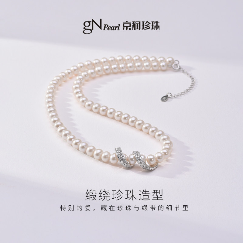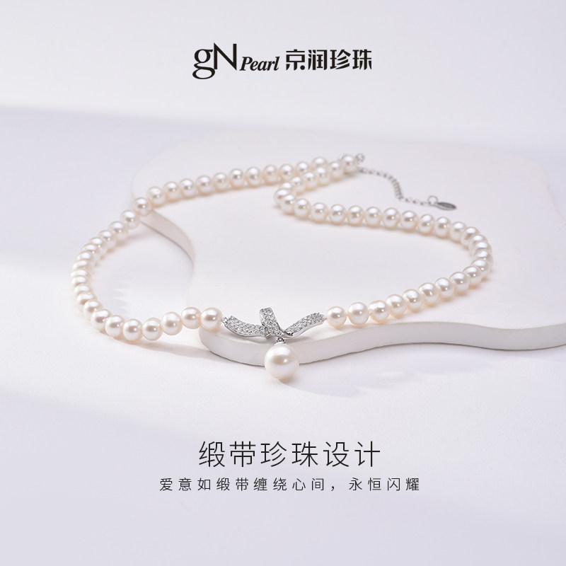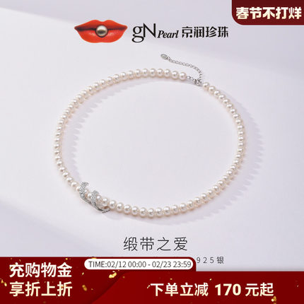 京润缎带之爱925银淡水珍珠项链