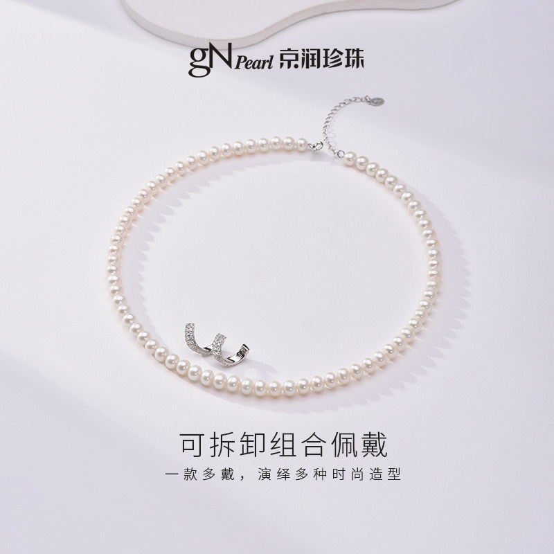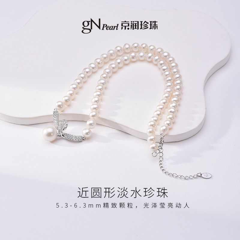 京润珍珠缎带之爱925银淡水珍珠项链5.3-6.3mm白色近圆形礼物女D