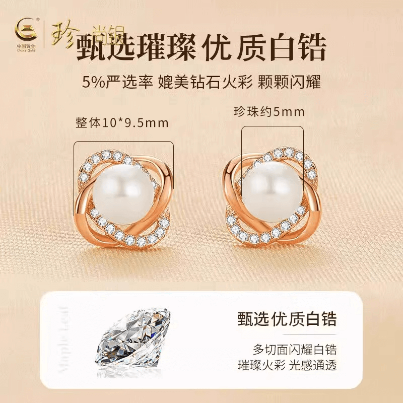 中国黄金珍尚银淡水珍珠耳钉纯银耳饰气质轻奢生日礼物送女友S925