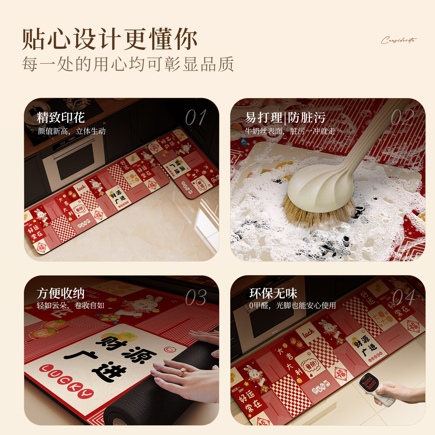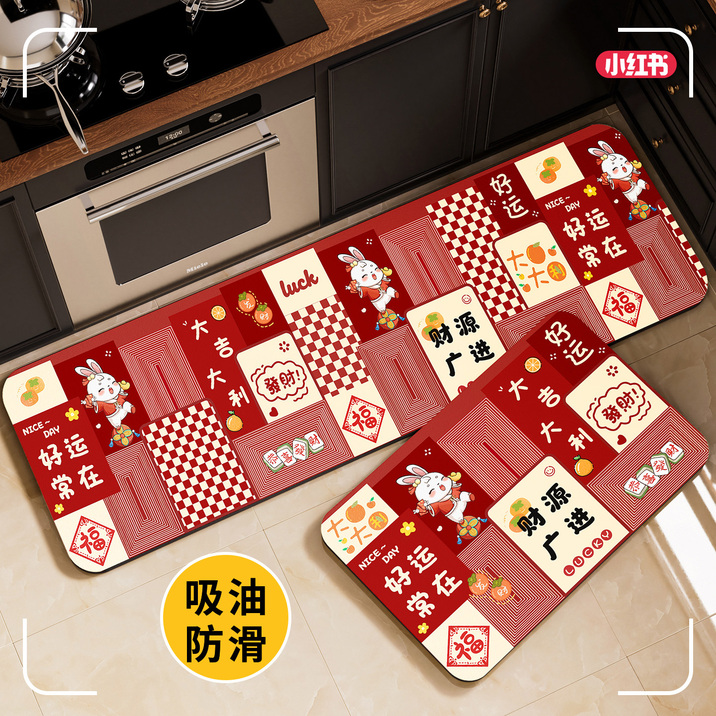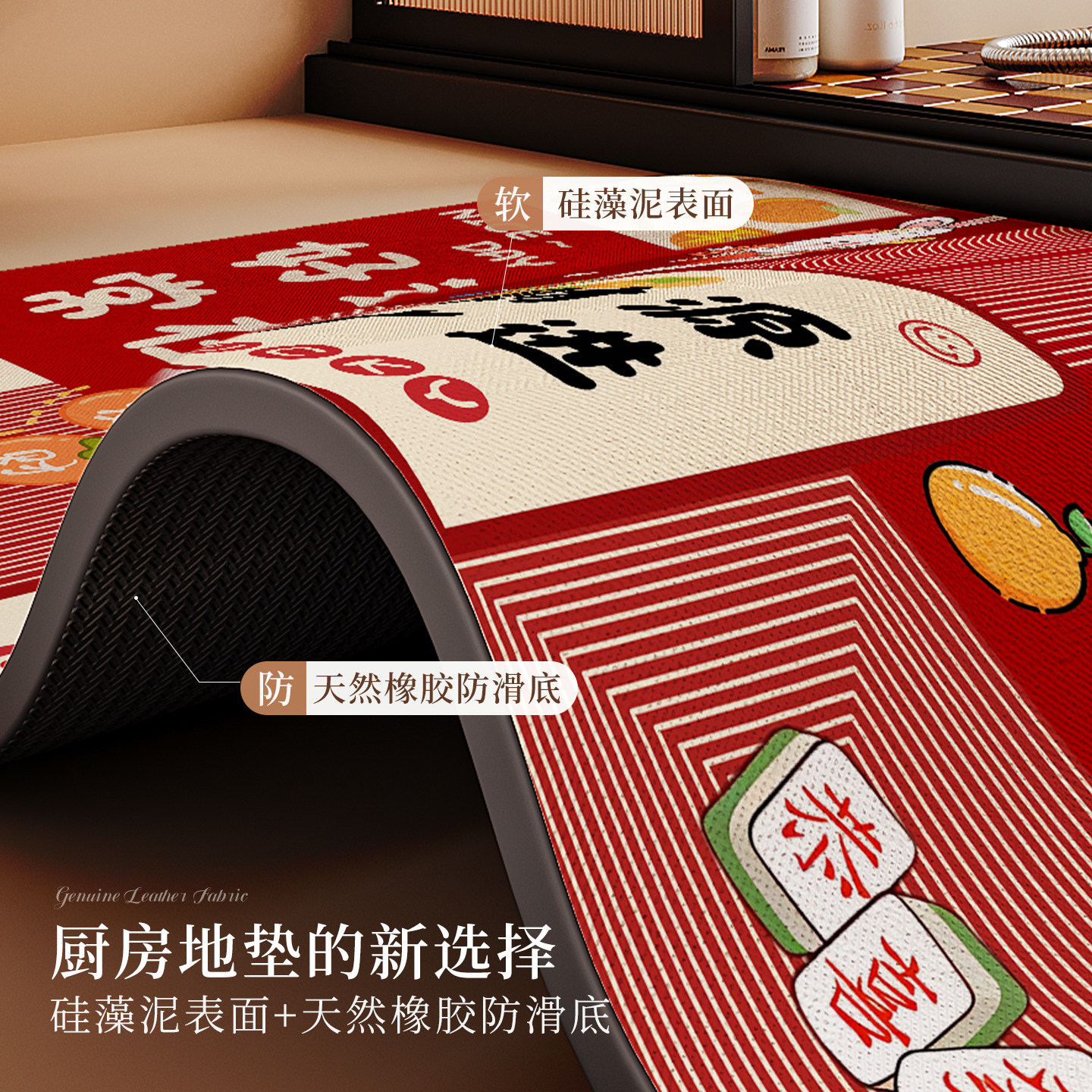 硅藻泥厨房地垫防滑防油可擦耐脏免洗专用脚垫吸水喜庆地毯可剪裁