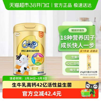 伊利QQ星儿童成长高钙奶粉3岁以上4段宝宝小学生营养早餐牛奶700g