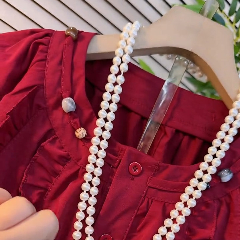 时尚韩版圆领订珠木耳花边衬衫