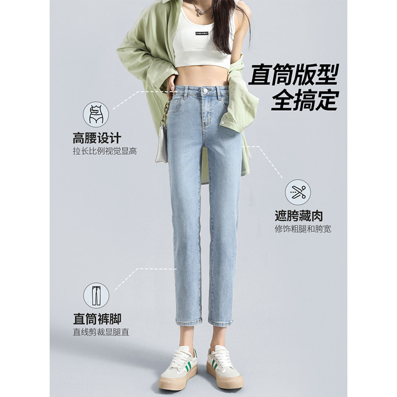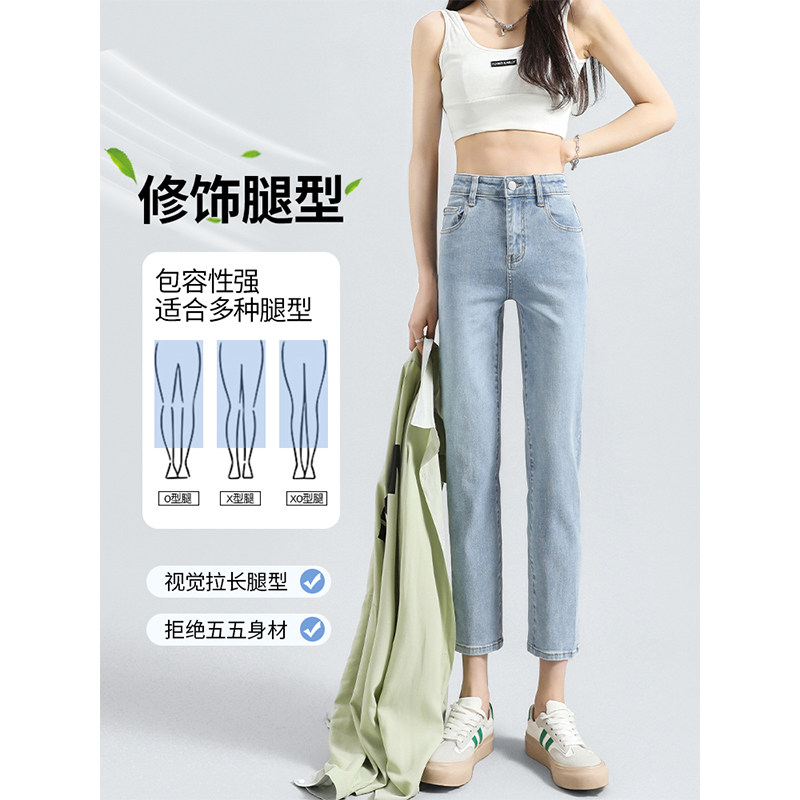 浅色牛仔裤女夏薄款2025新款爆款八分九分小个子显瘦直筒烟管裤子