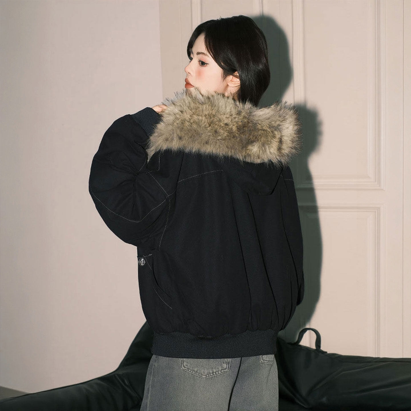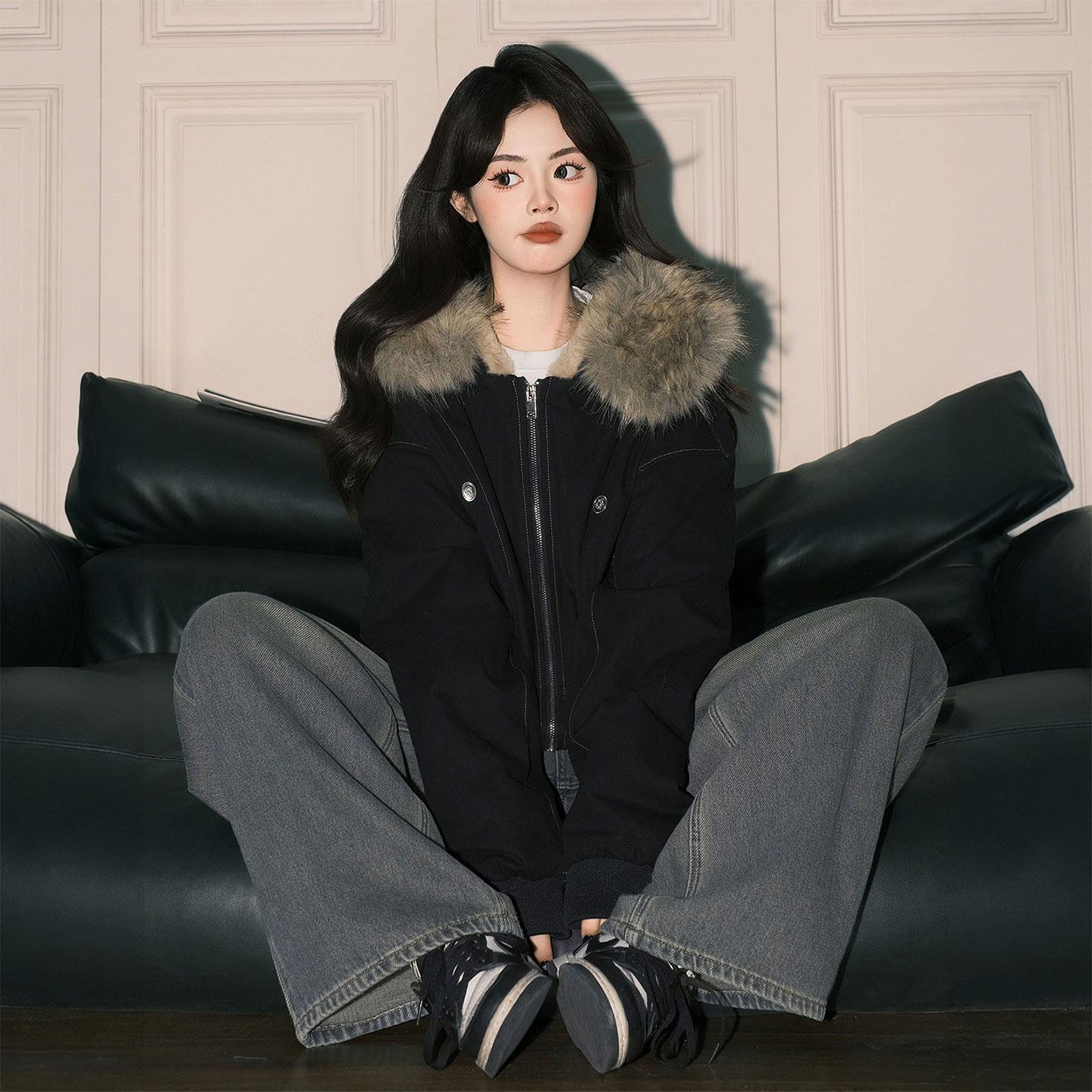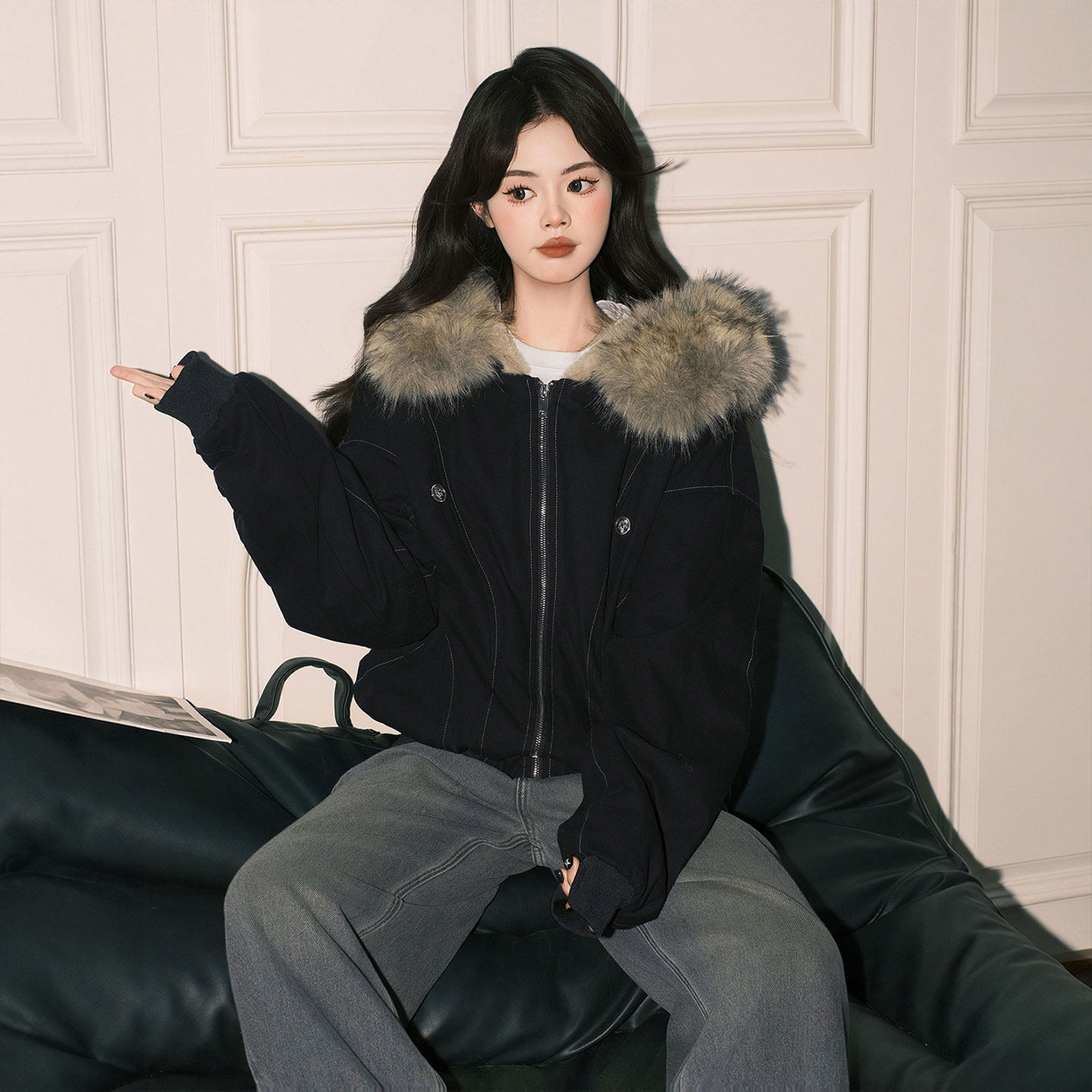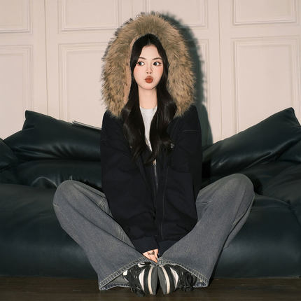 大码女装辣妹风大毛领设计棉衣女