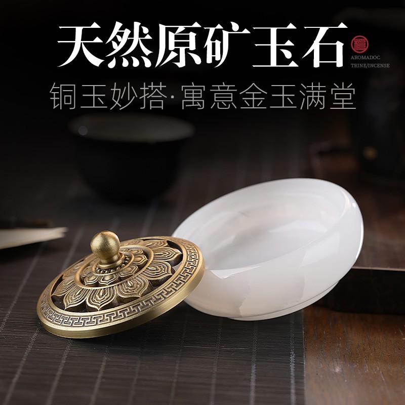 香炉茶道天然玉石檀香炉摆件插香沉香室内家用盘香家用室内香薰炉