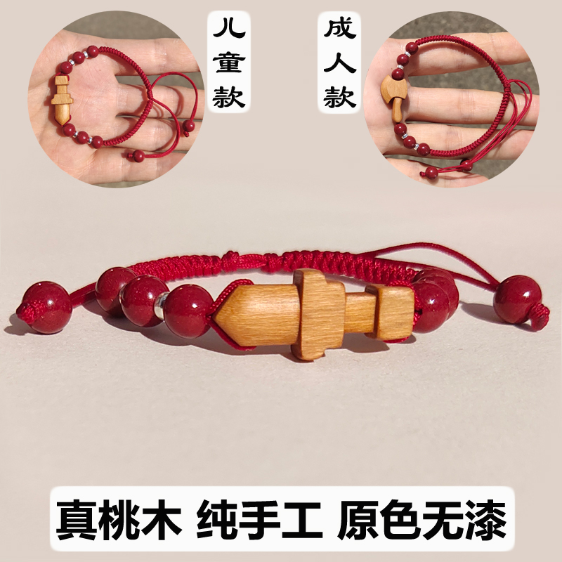 纯手工桃木剑婴儿手链女款男孩儿童宝宝真朱砂红绳脚链小斧子挂件