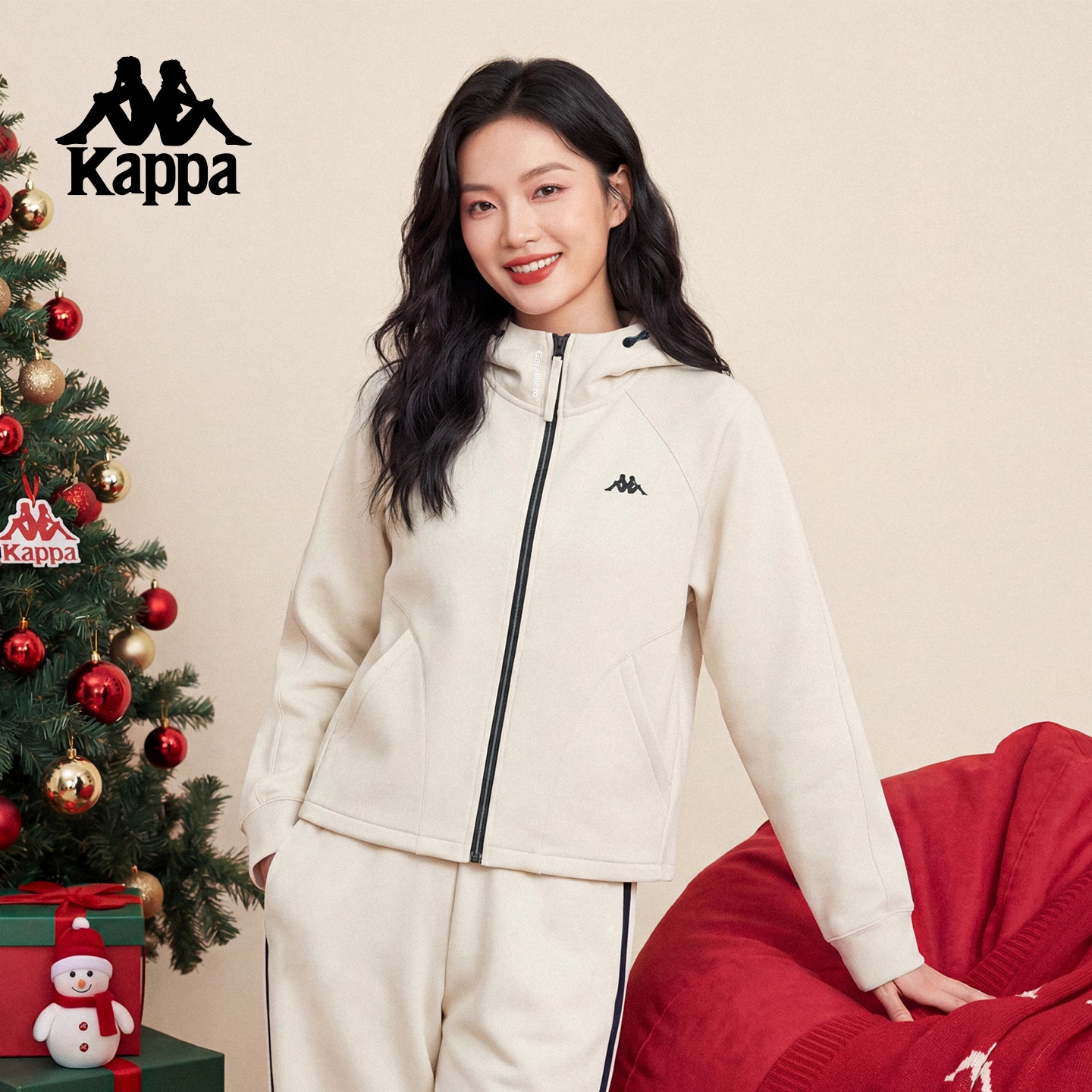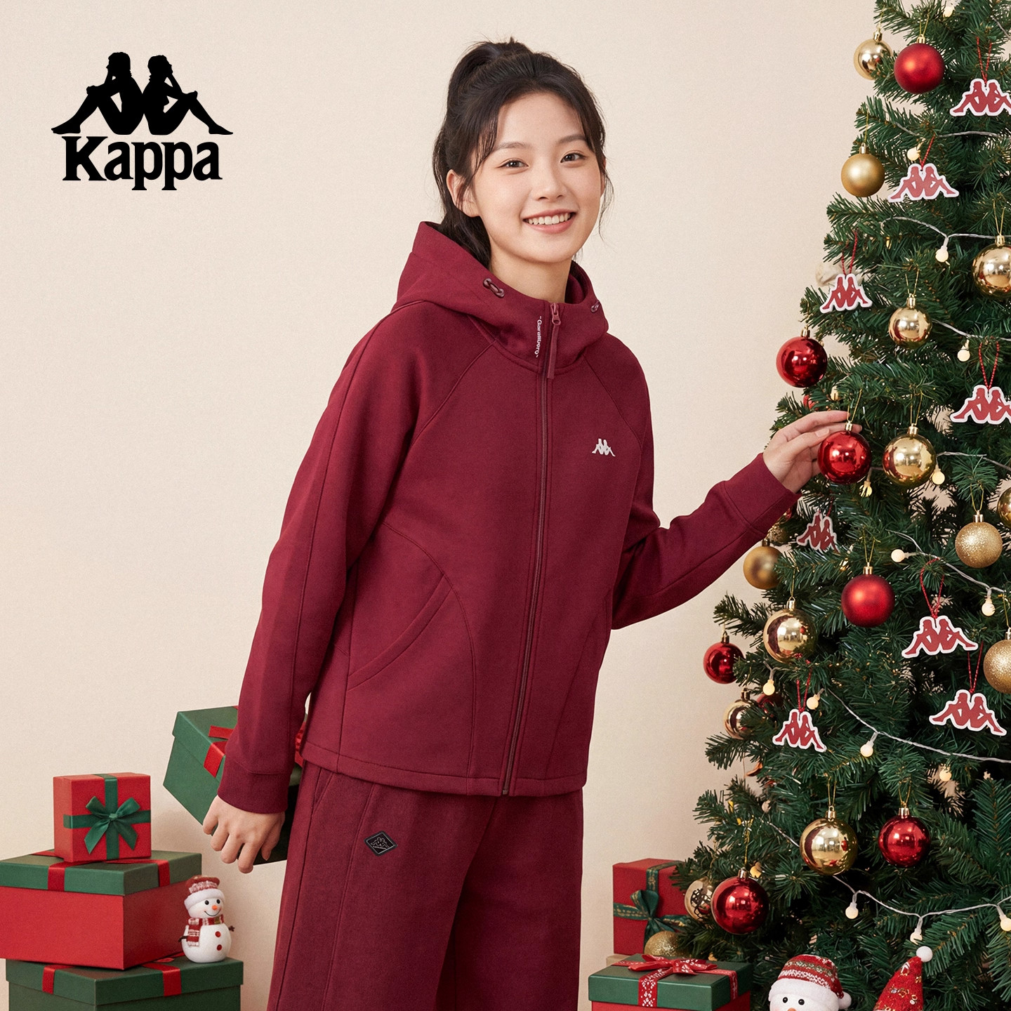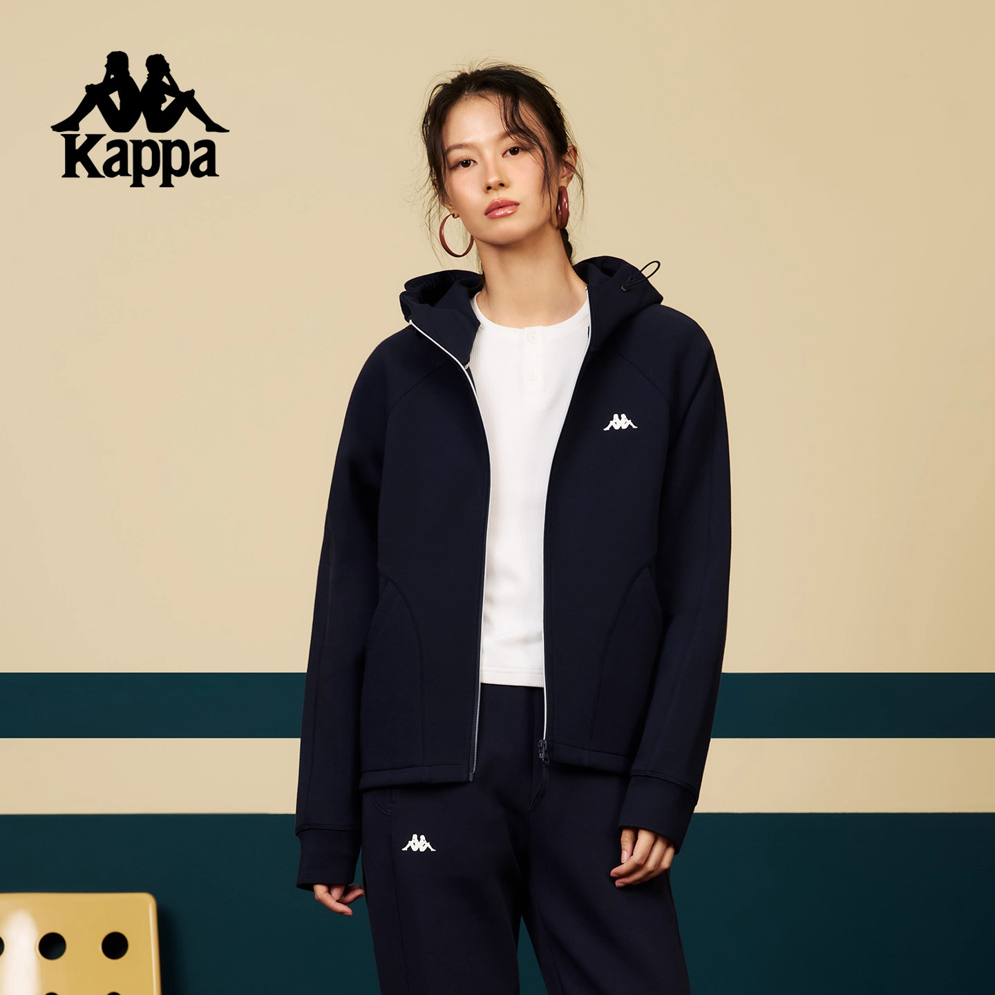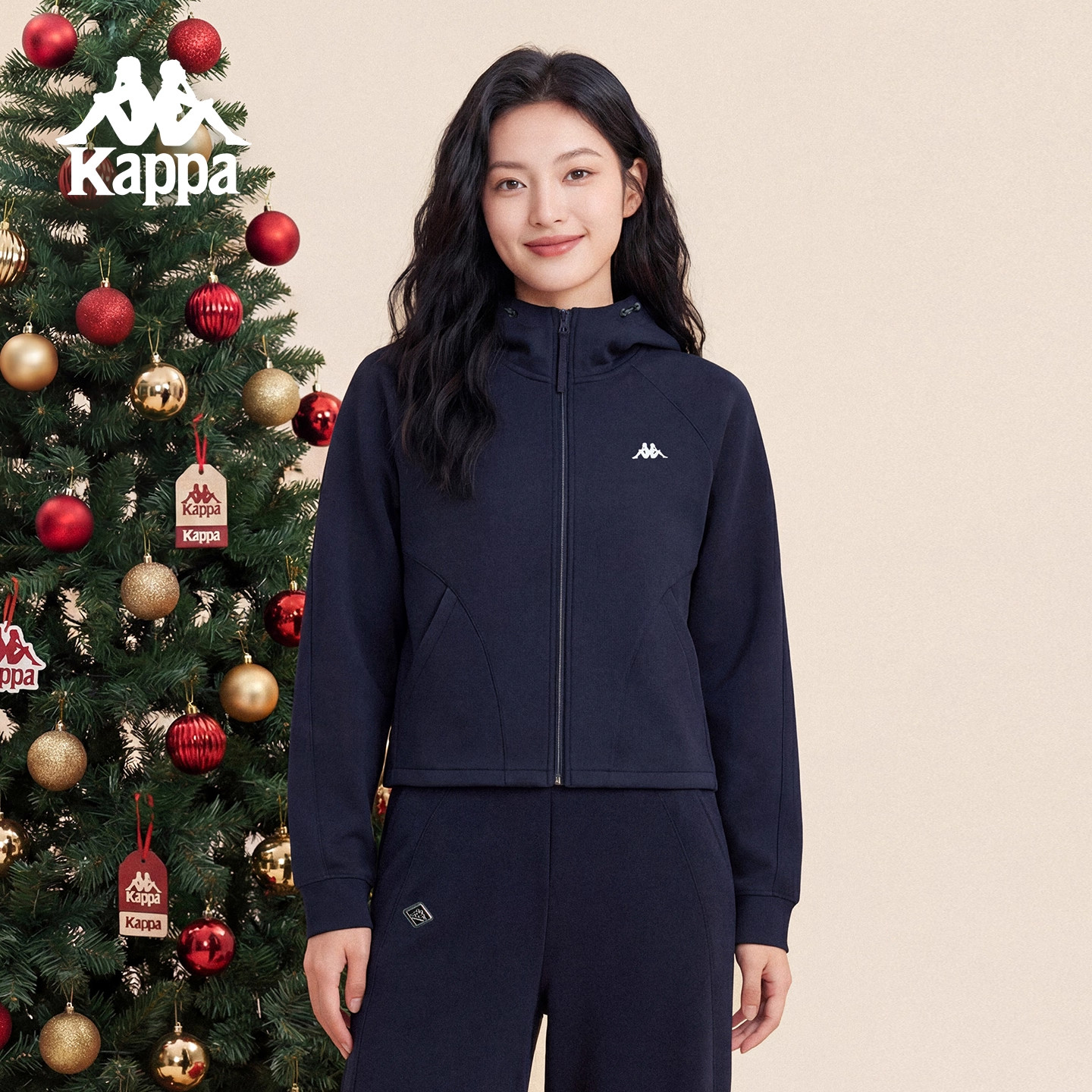 Kappa卡帕女装2025冬季新款舒适百搭时尚连帽针织外套K0F82MK45