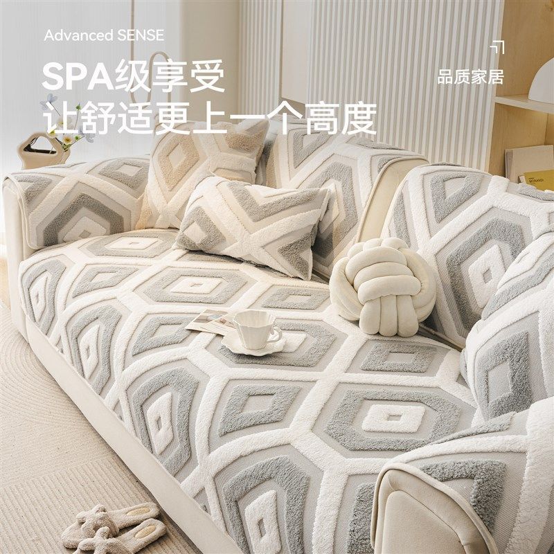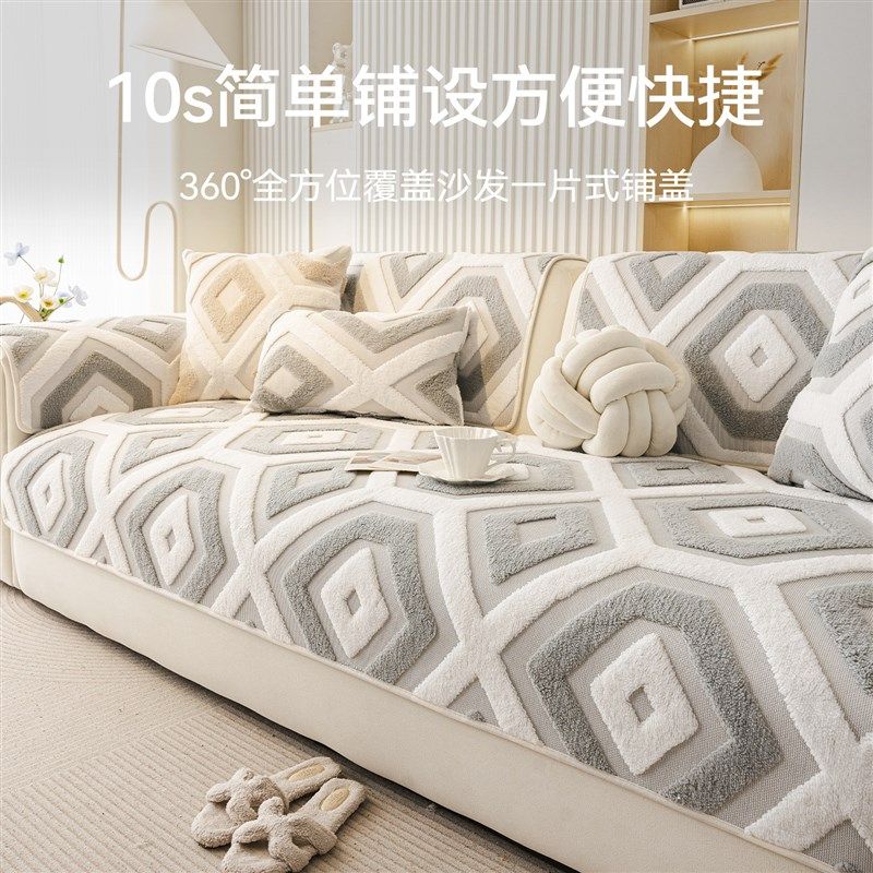 高级感沙发垫冬加厚固定防滑毛绒坐垫子2025新款直排一片式盖布巾