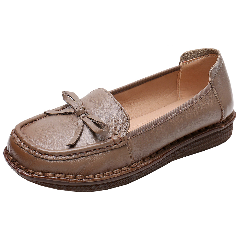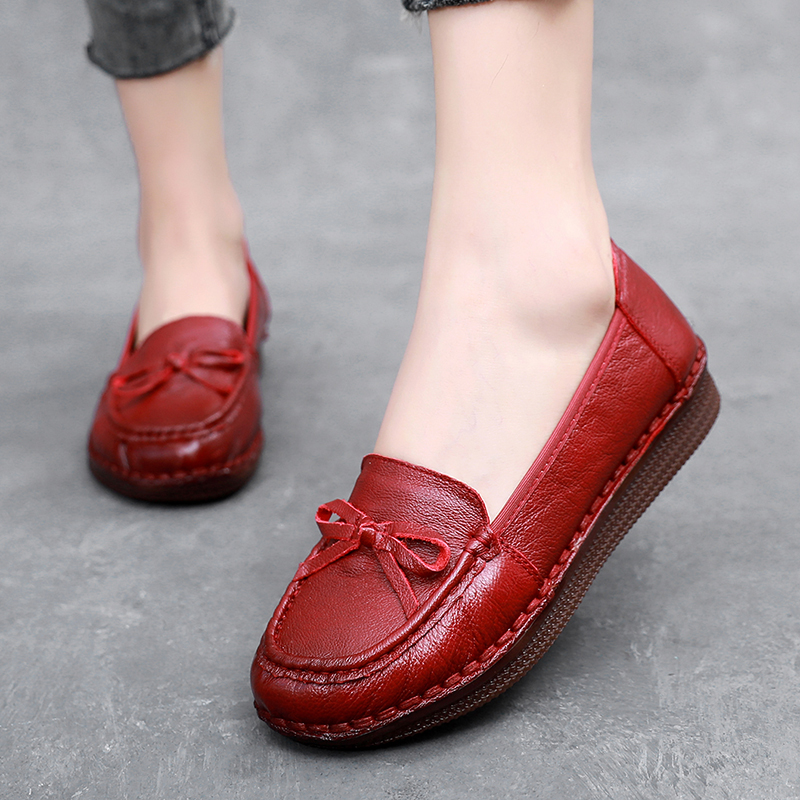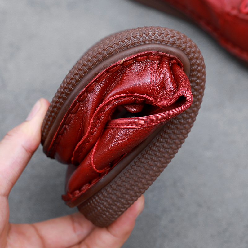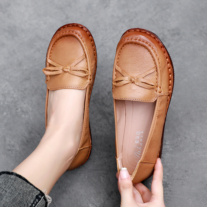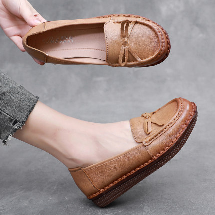真皮复古软皮牛筋底中老年平底妈妈鞋夏季软底平底舒适单女鞋防滑