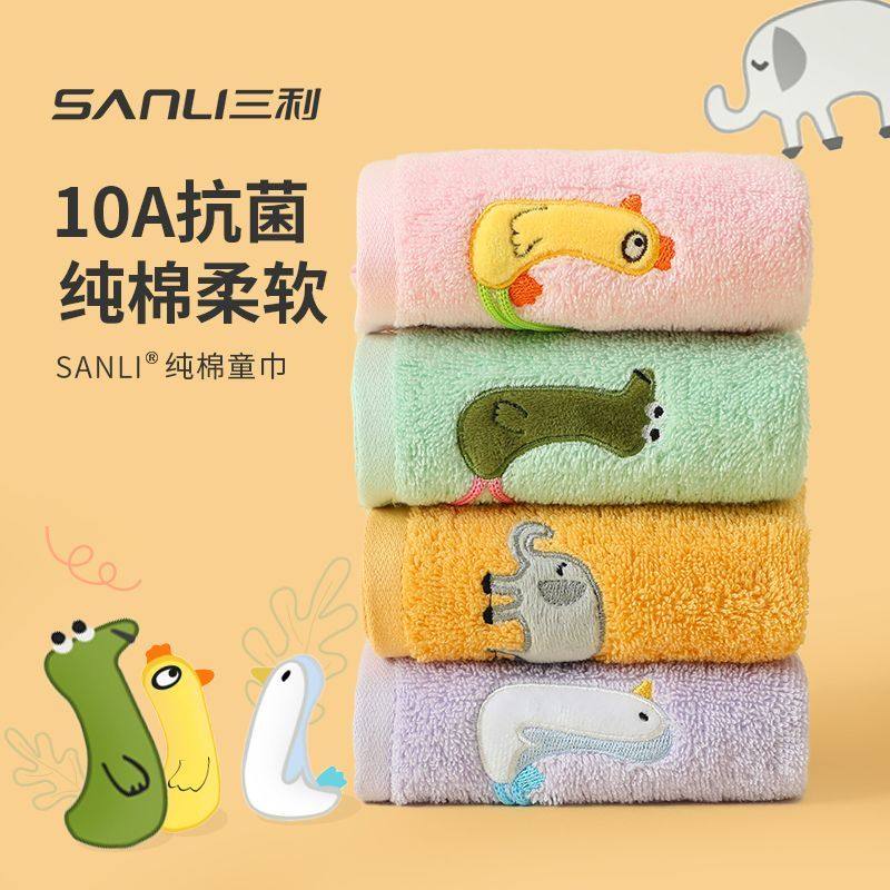 三利童巾10A抗菌纯棉儿童毛巾柔软吸水不掉毛速干全棉面巾洗脸巾