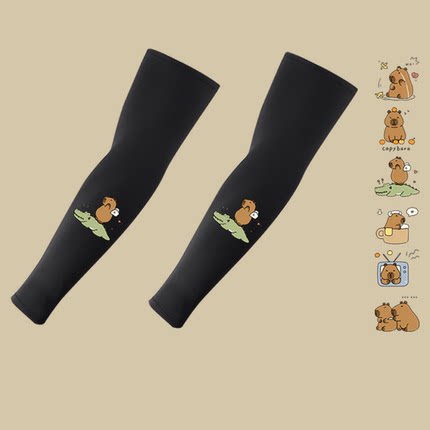 软萌卡皮巴拉佛系水豚君周边男女夏卡通情侣定制防晒护臂套袖冰袖