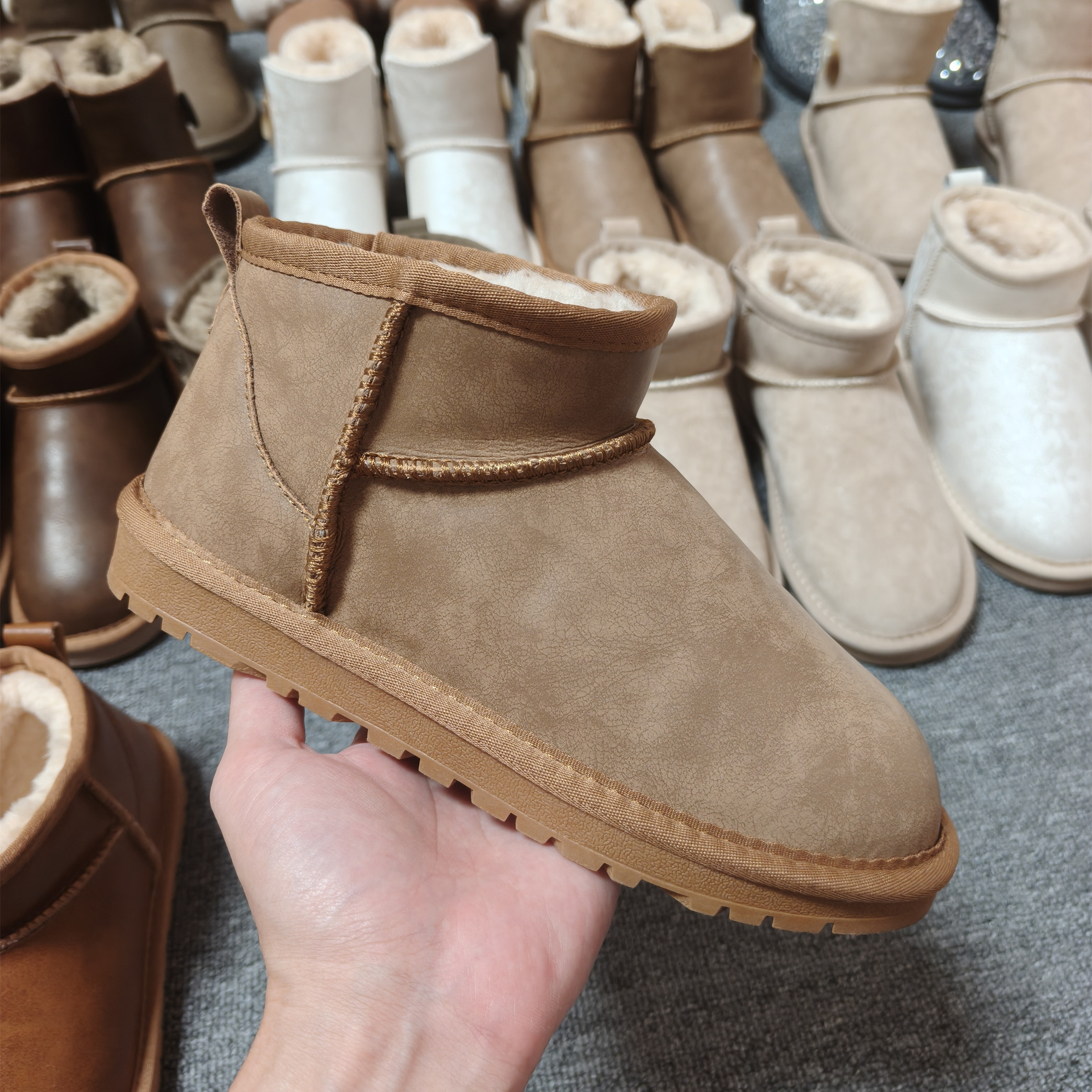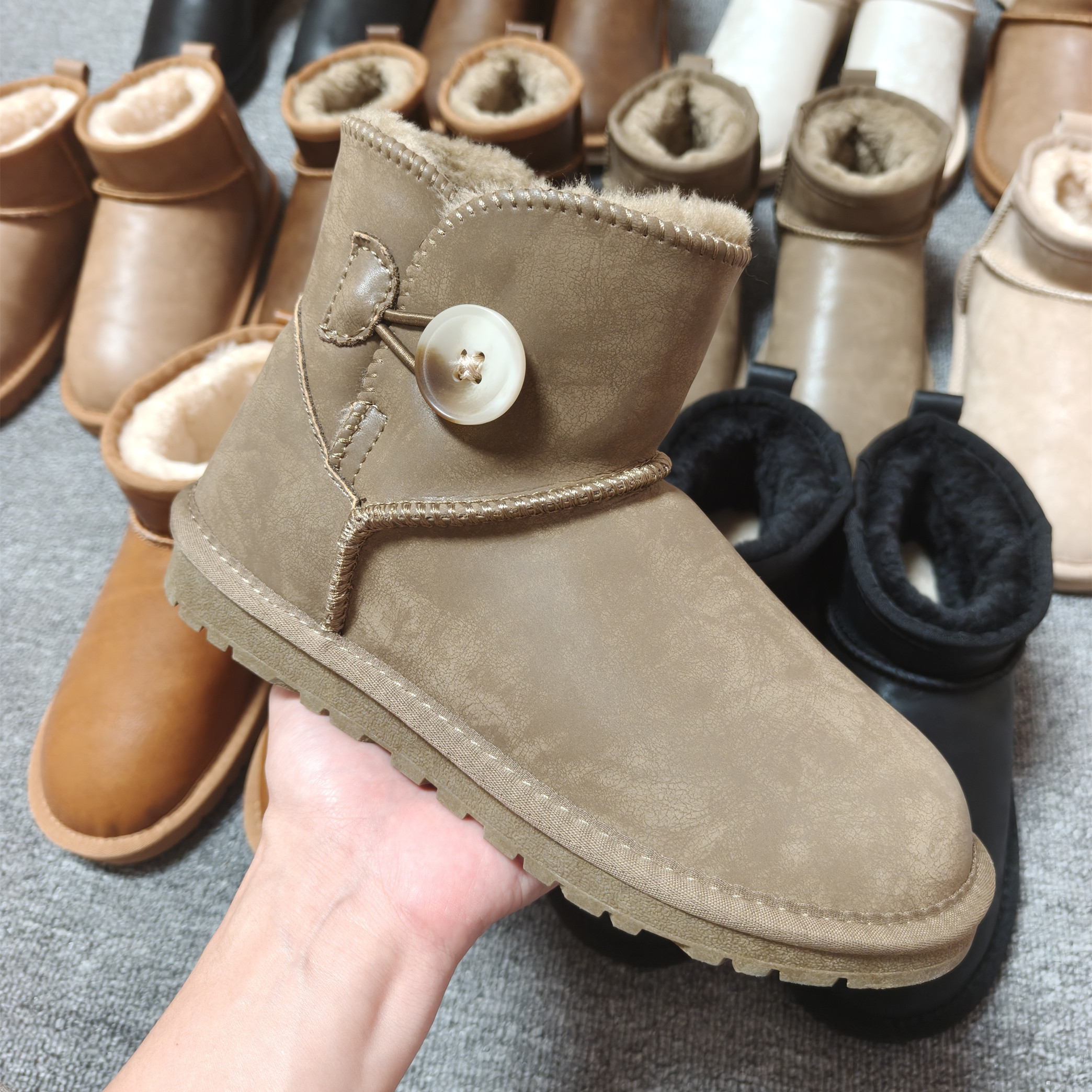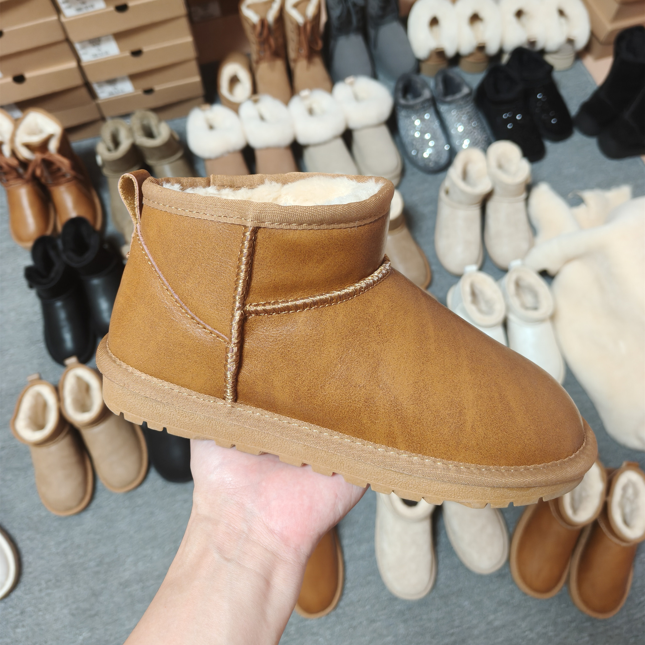 皮面雪地靴女款冬季加绒防滑棉鞋