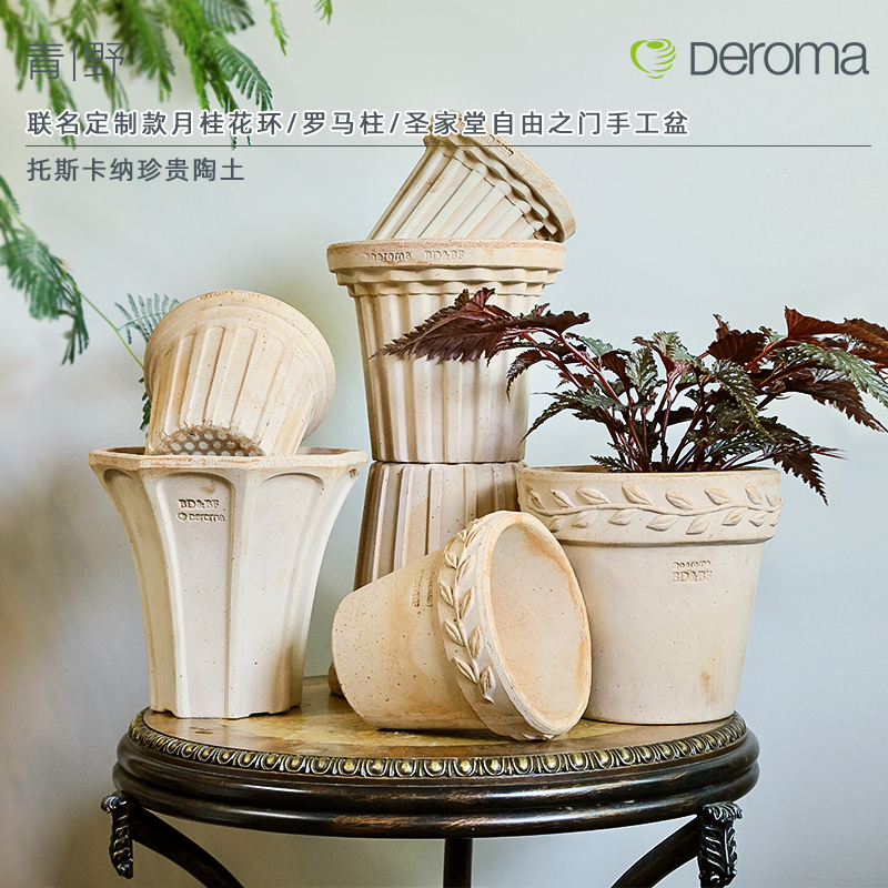 青野 DEROMA 意大利进口红陶土盆三角梅陶瓷花盆透气手工粗陶北欧