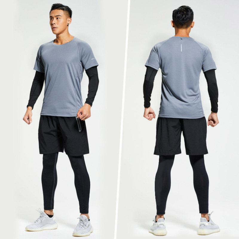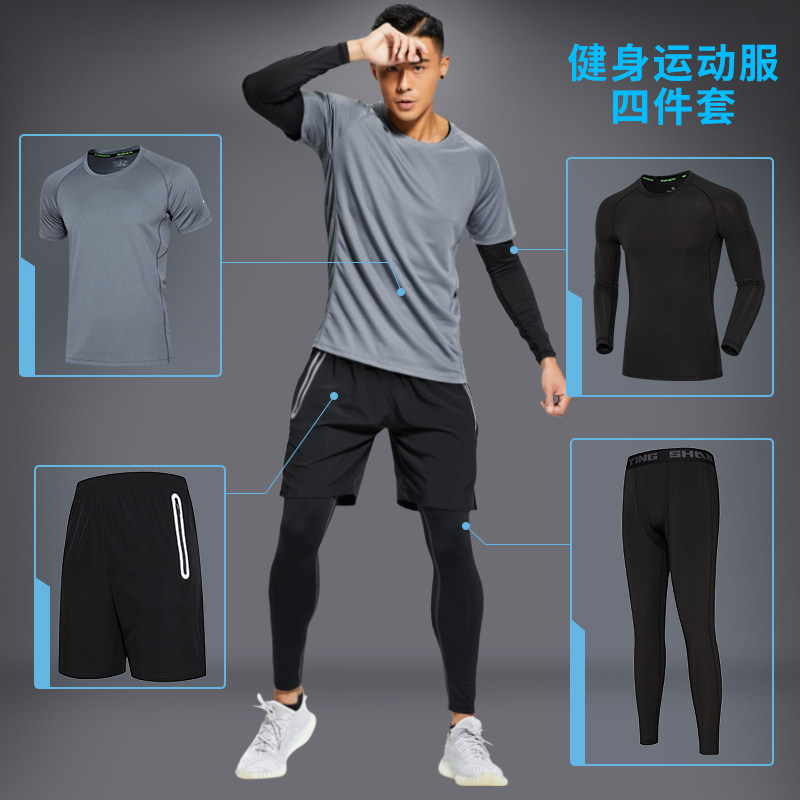 极速跑步套装男运动健身房篮v球装备训练紧身速干晨夜跑秋冬季健