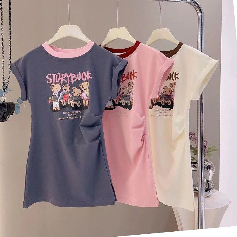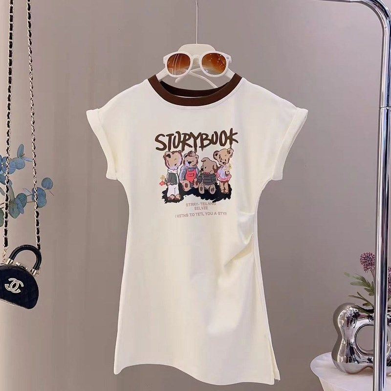 女童卡通连衣裙子夏装新款时尚洋气纯棉长款T恤儿童休闲背心裙薄
