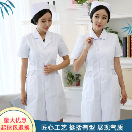 护士服女款长袖白大褂美容院药店工作服长夏季短袖立领医生实验室