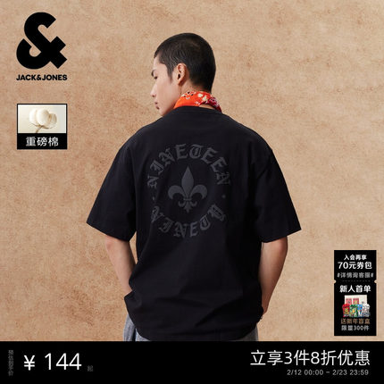 【重磅棉】杰克琼斯男装新款刺绣T恤印打底衫情侣装刺绣宽松发泡