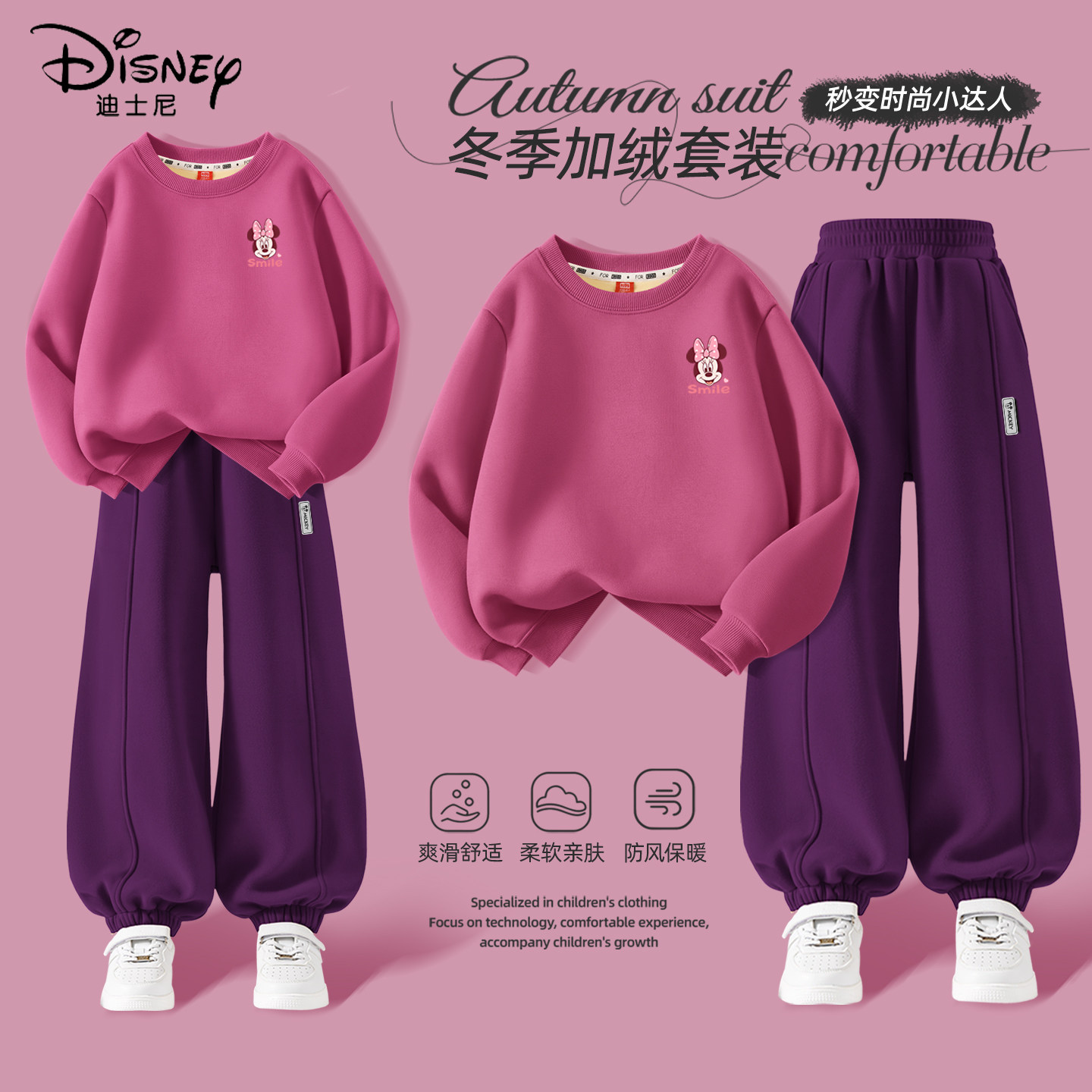 迪士尼女童加绒套装2025新款冬季潮流时尚中大童加厚卫衣儿童冬装