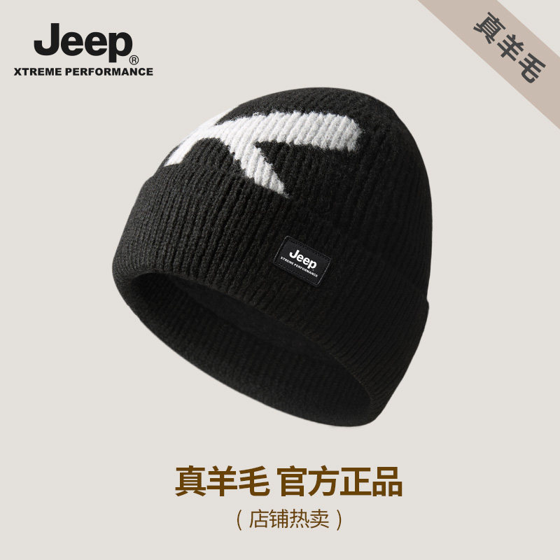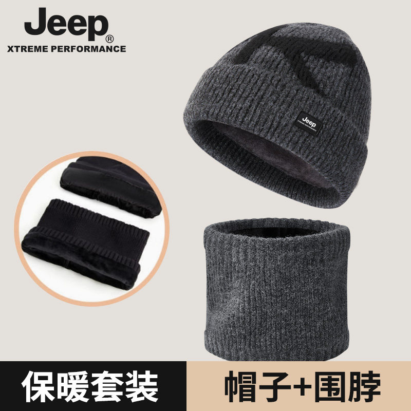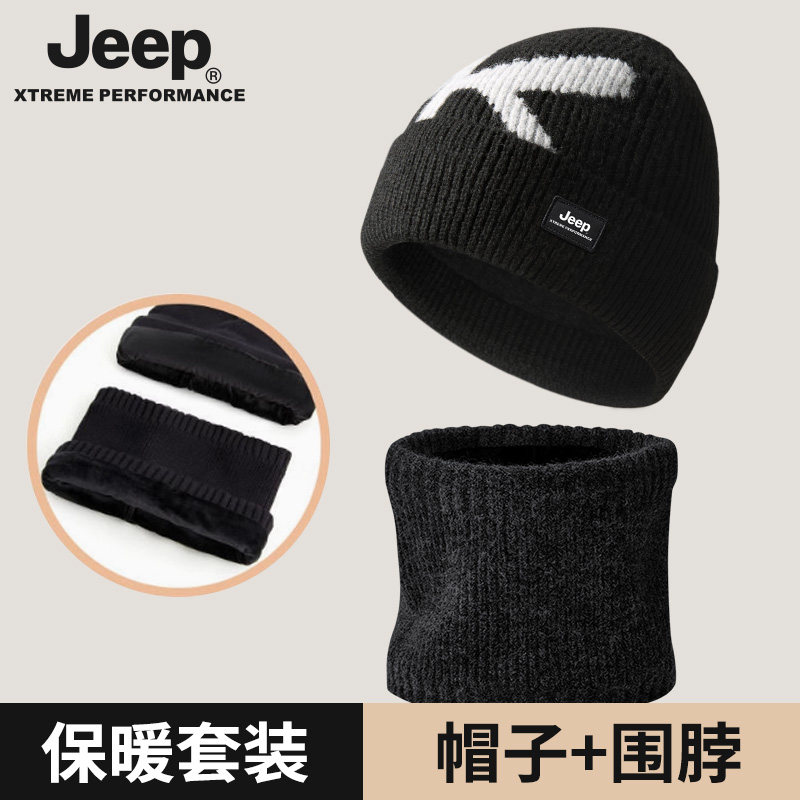 jeep吉普毛线帽子男士冬季加绒羊毛围脖保暖户外骑行护脖防风针织