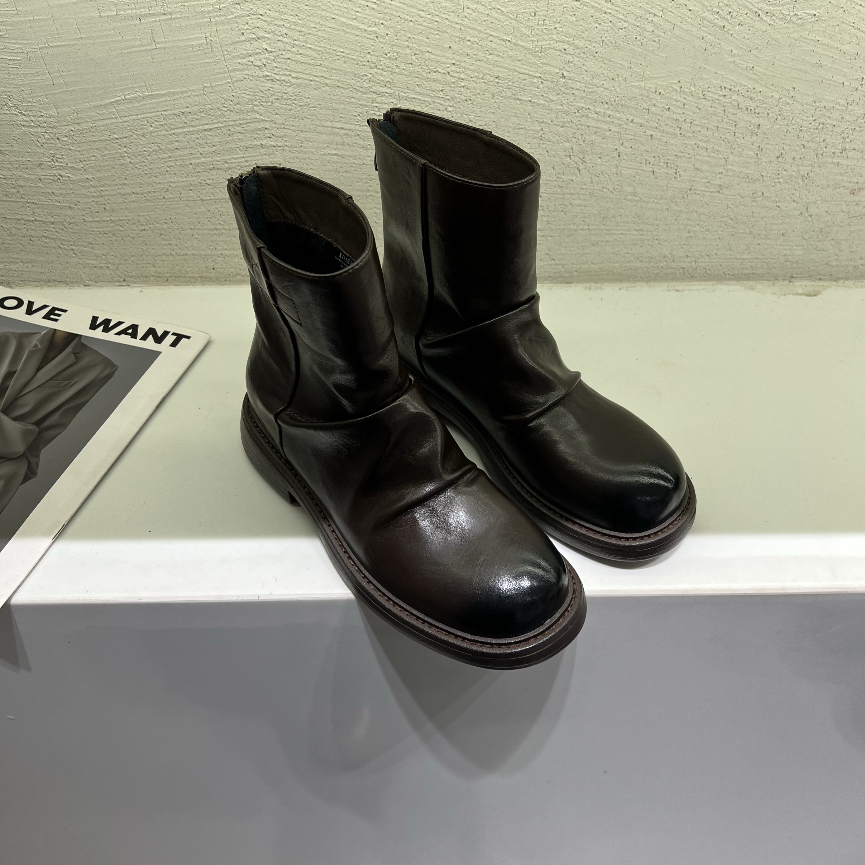 英伦风圆头擦色马丁靴女25冬季粗跟后拉链堆堆靴加绒保暖百搭短靴