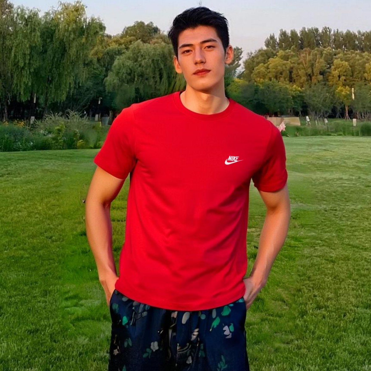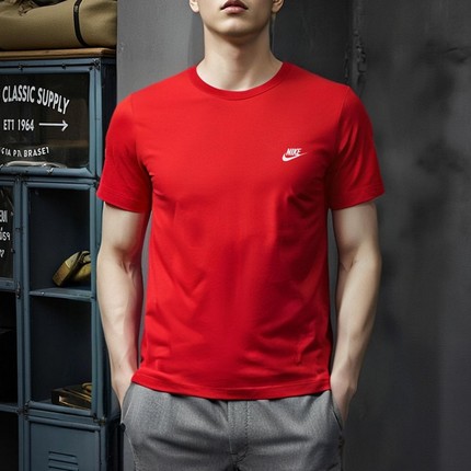 Nike耐克短袖夏季新款纯棉运动T恤男红色宽松上衣正品透气五分袖