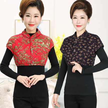 妈妈驼棉护肩中老年人女装保暖睡觉马夹冬季中年加厚居家坎肩马甲