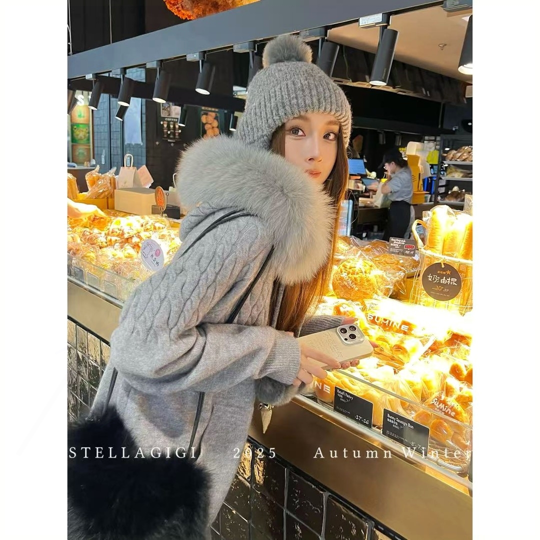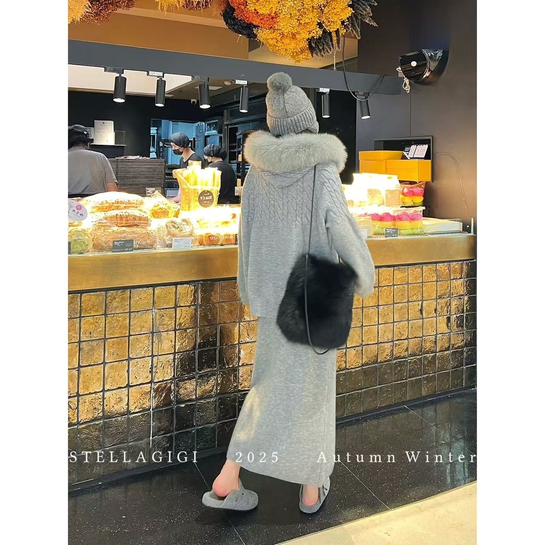 扣毛衣+直筒半身裙套装TZ-工作室原创SG / 杨依姗 AW狐狸毛领牛角