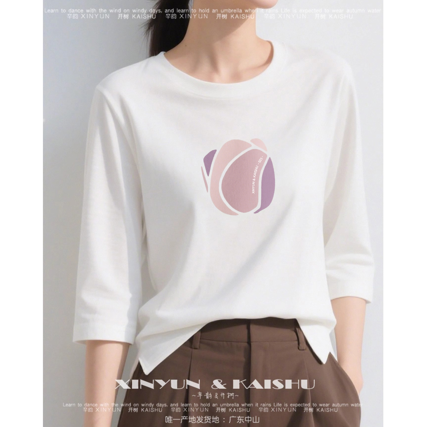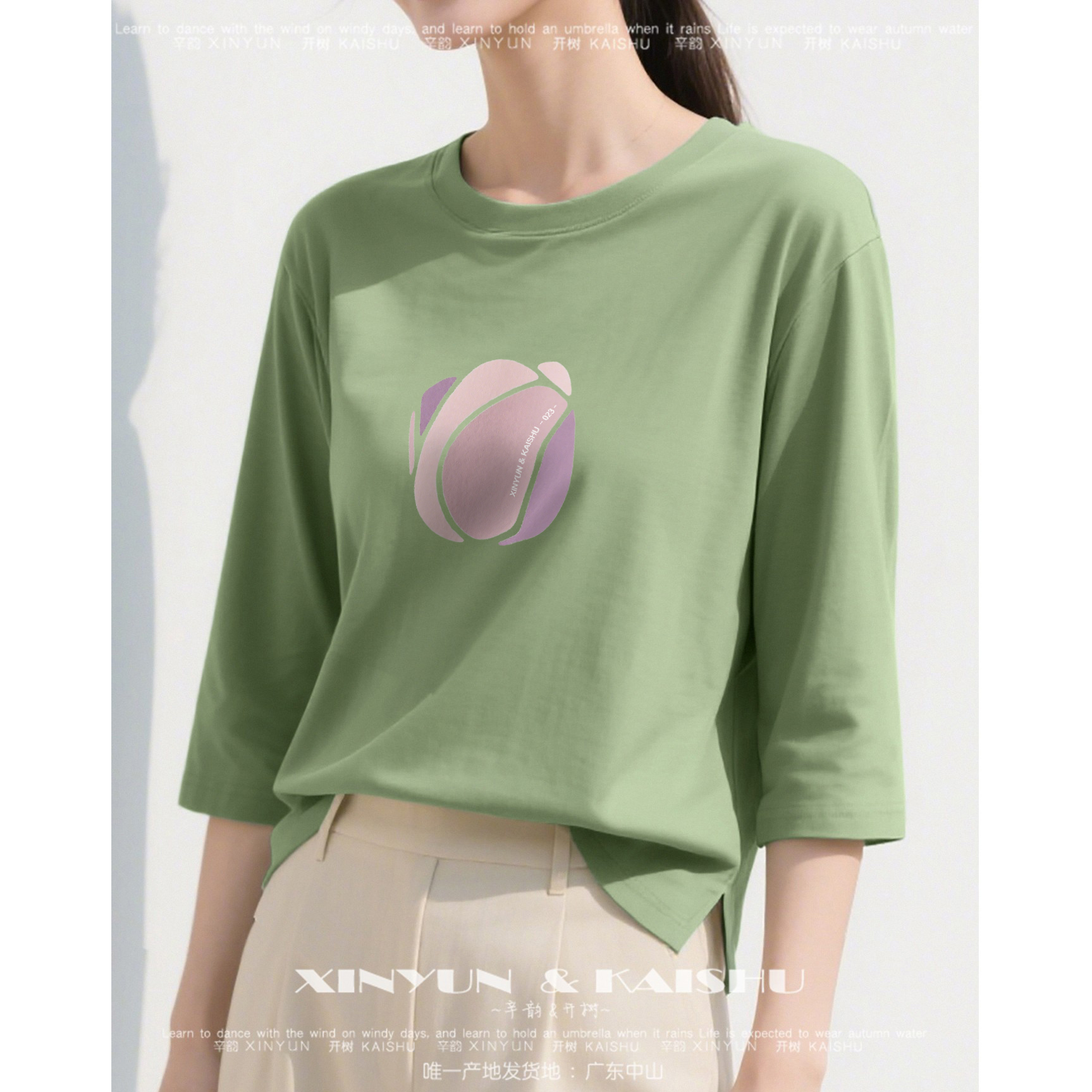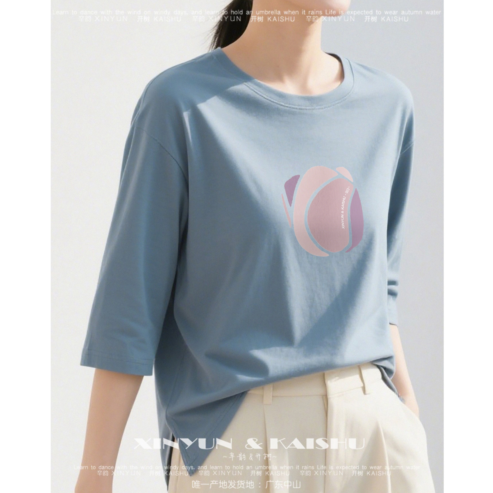 高端7分袖t恤女大码减龄胖mm体恤休闲七分袖上衣宽松夏季防晒小衫