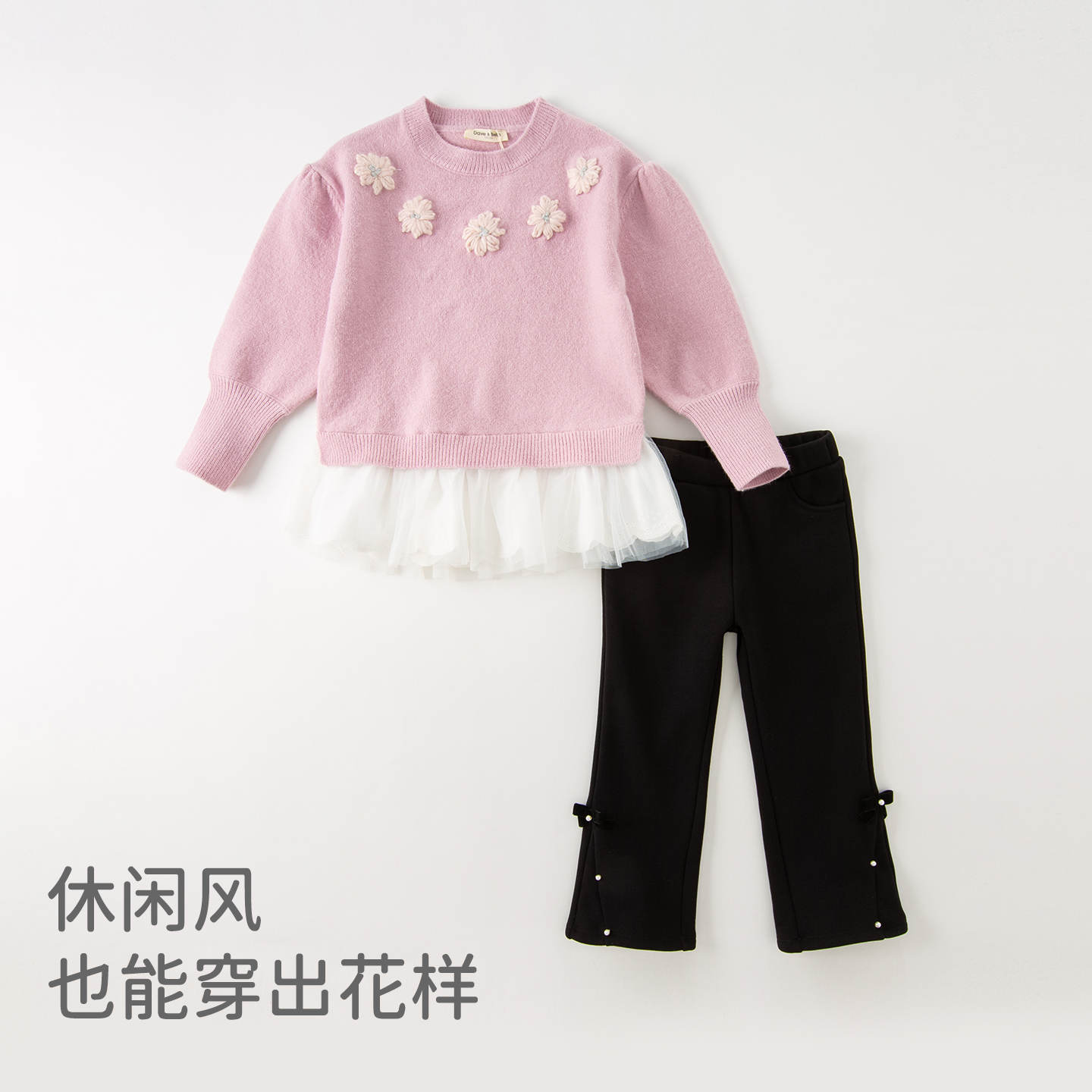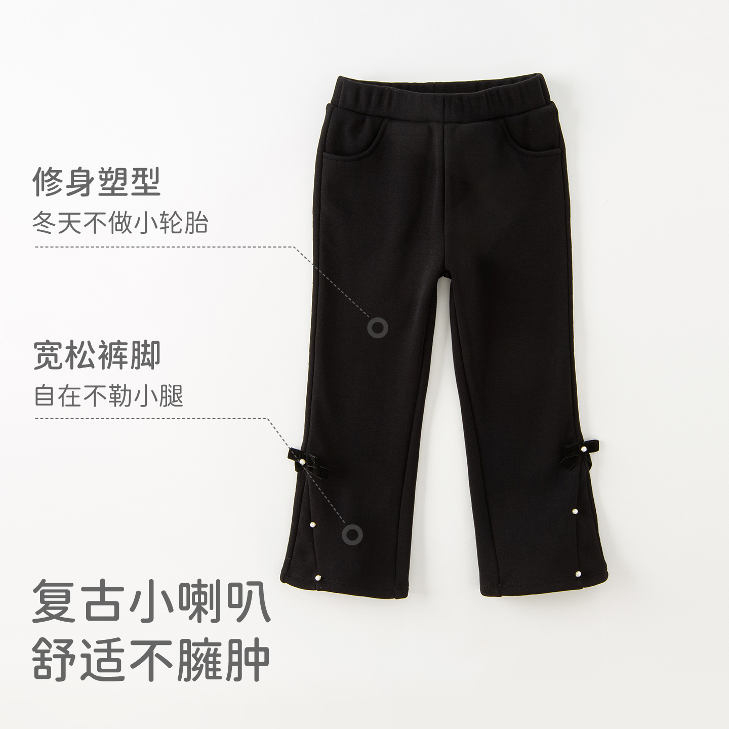 戴维贝拉儿童裤子秋装女童加绒喇叭裤女冬季新款黑色加厚长裤童装
