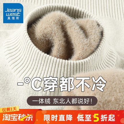 真维斯一体绒加厚半高领毛衣男冬