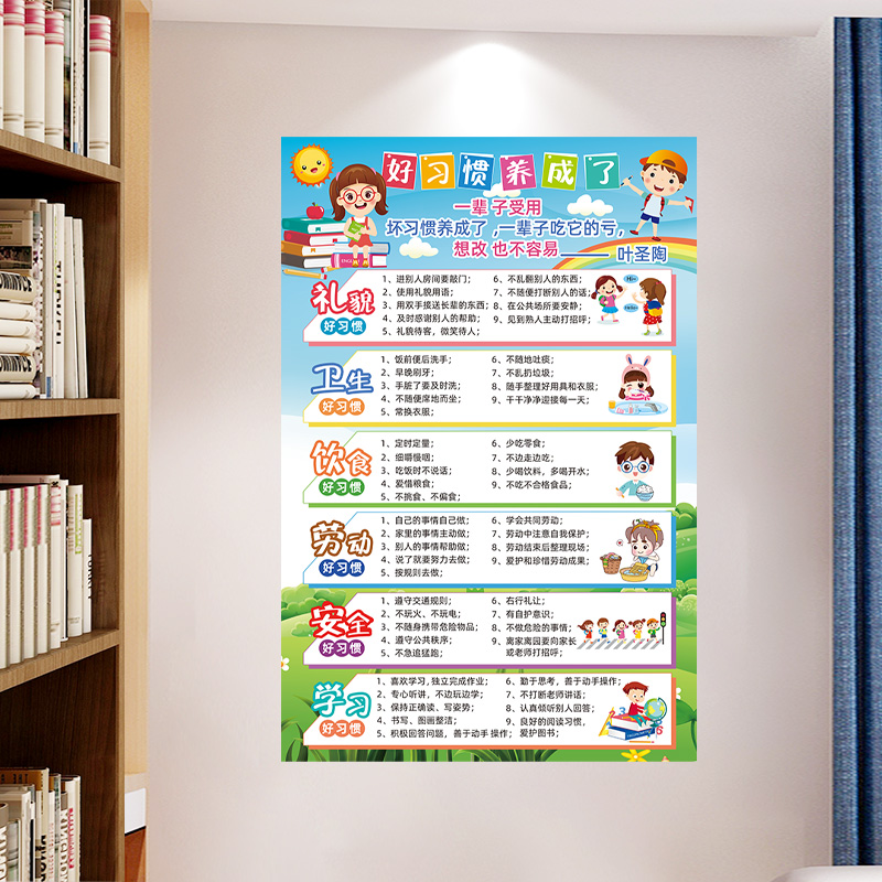 男孩女孩家规家训墙贴创意挂图儿童房间墙面背景墙壁装饰布置贴纸