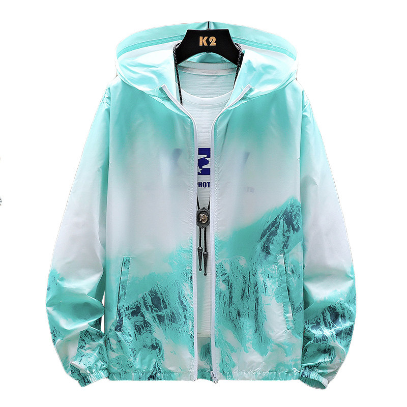 冰丝凉感防晒衣男士夏季轻薄透气连帽外套雪山印花户外钓鱼防晒服