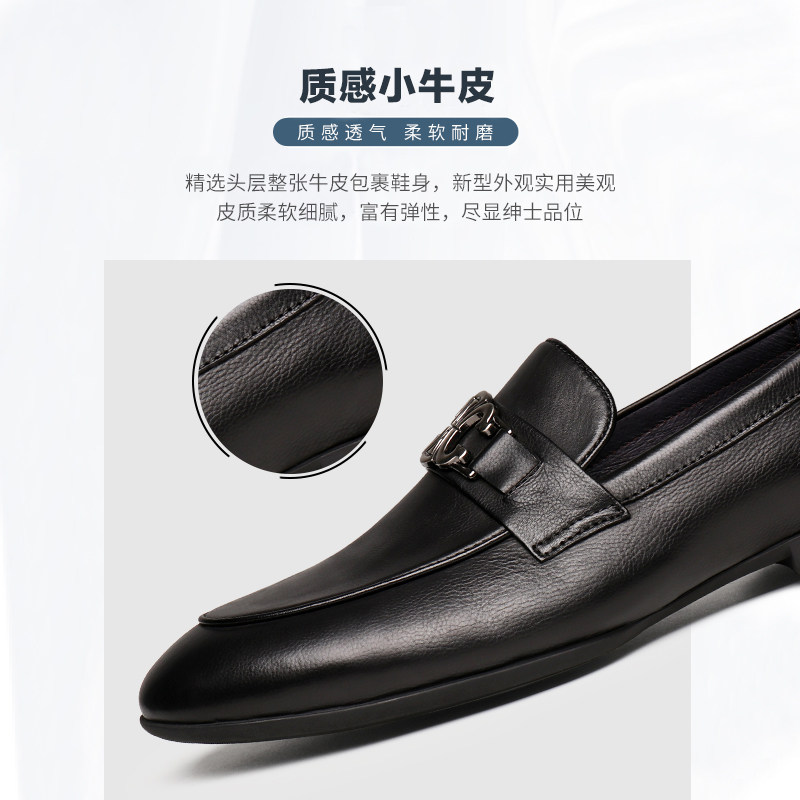 新款春夏季休闲皮鞋男英伦百搭软底真皮一脚蹬商务乐福鞋懒人皮鞋