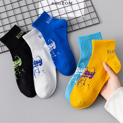 青少年男童袜子冬季纯棉防臭短袜初中生篮球运动潮袜ins潮流短袜