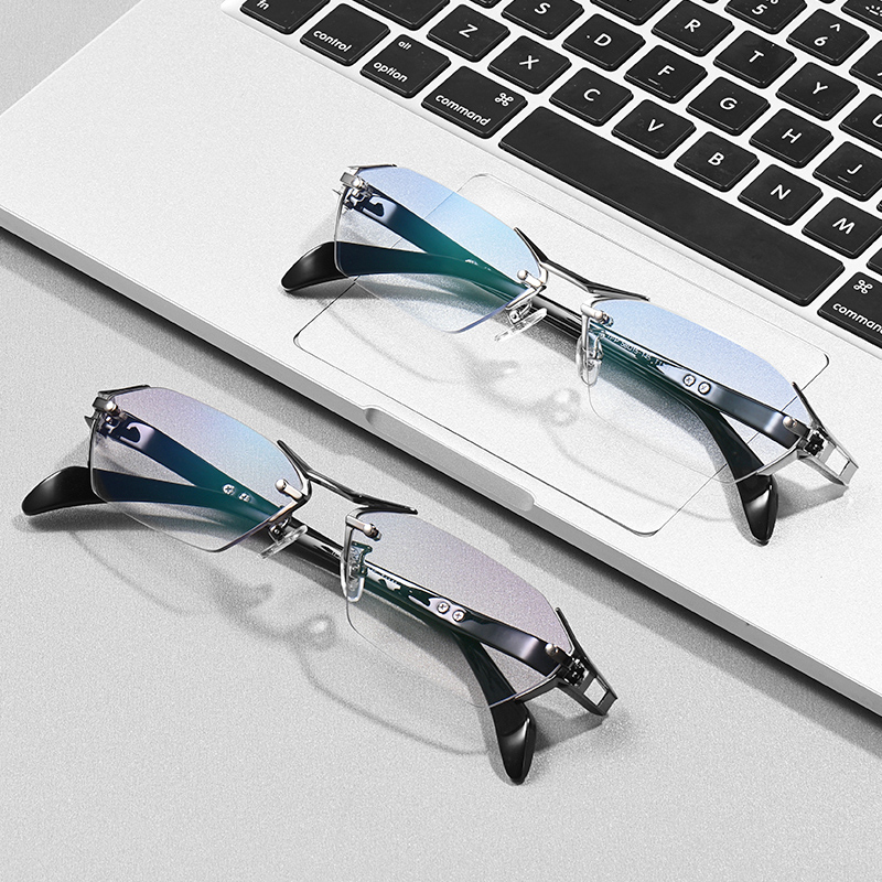 无框防蓝光辐射眼镜男护眼成品超轻平光可配近视眼睛框架女变色潮
