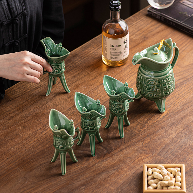 陶瓷酒具套装三足仿古酒壶白酒杯烈酒爵杯一壶四杯礼盒装礼品送礼