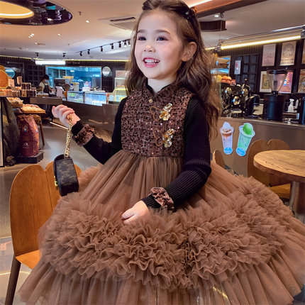 米米哈罗女童连衣裙冬装2025新款儿童小香风网纱公主裙女孩礼服裙