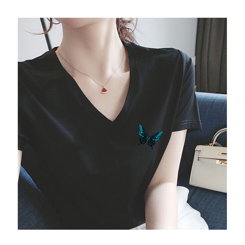 纯棉V领短袖T恤女2025年夏季新款宽松时尚气质白色上衣女体恤衫潮