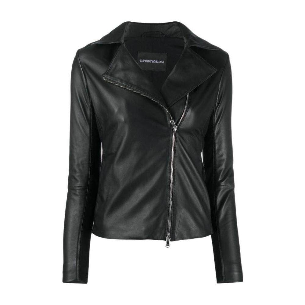 1h可退 奢淘 Emporio Armani 拉链机车皮夹克 女外套皮衣