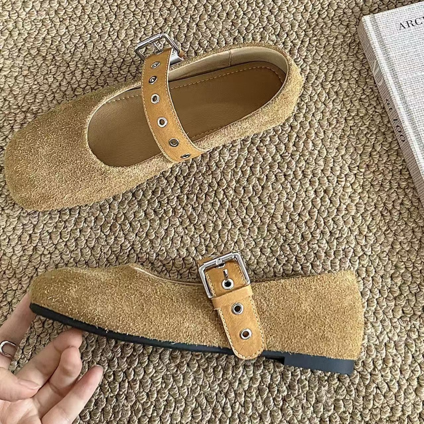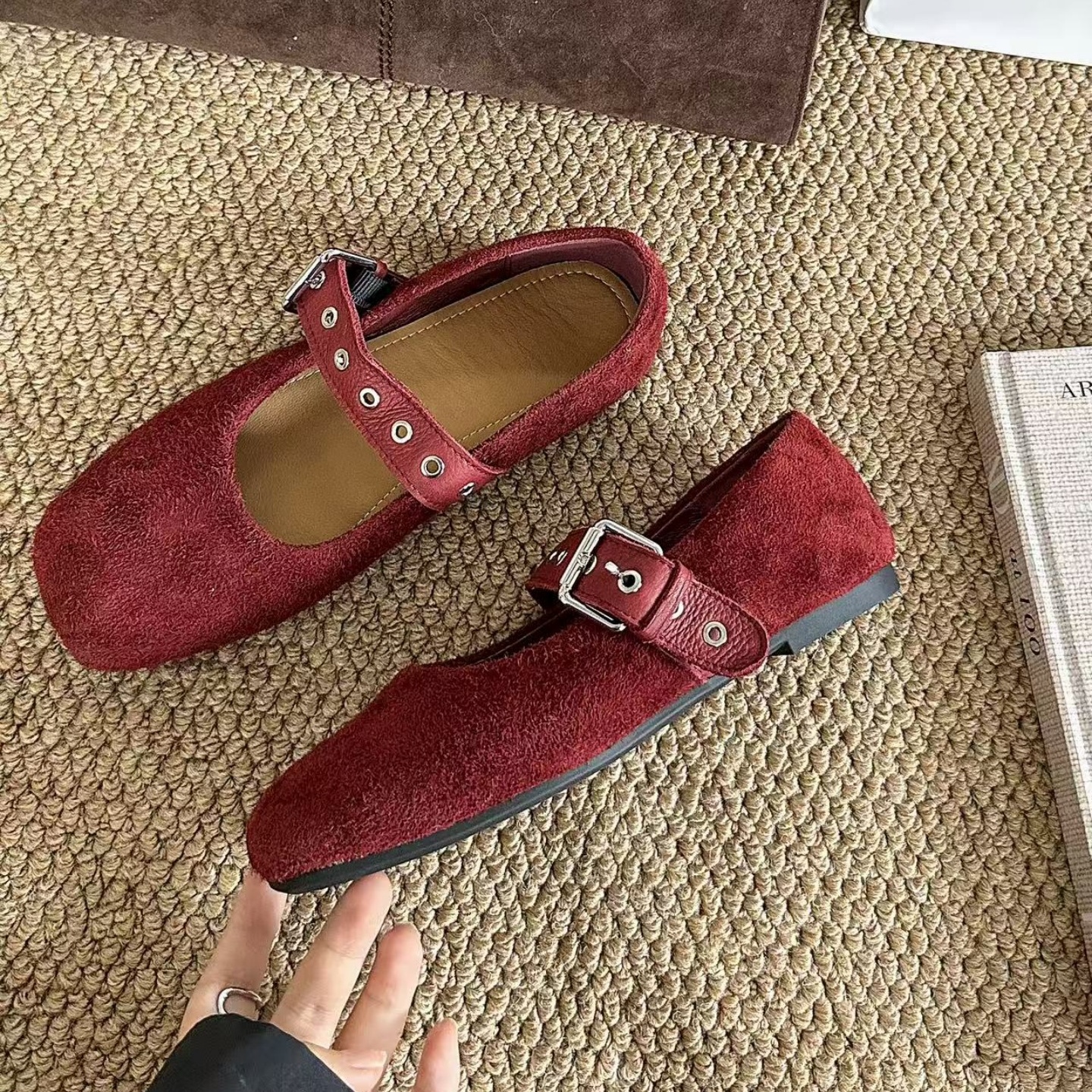 2025春季新款复古方头浅口单鞋女平底一字扣带玛丽珍鞋芭蕾舞鞋
