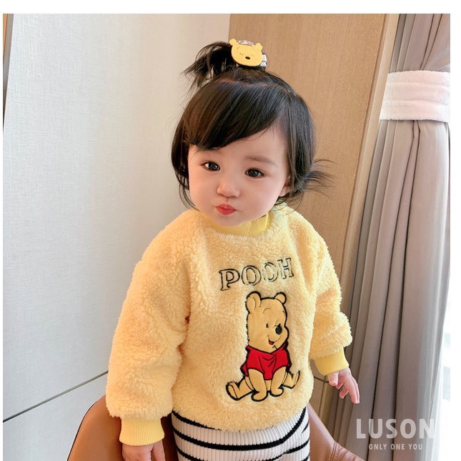 男女童仿羊羔毛绒加厚卫衣冬外套保暖婴儿中小童上衣卡通韩版男宝