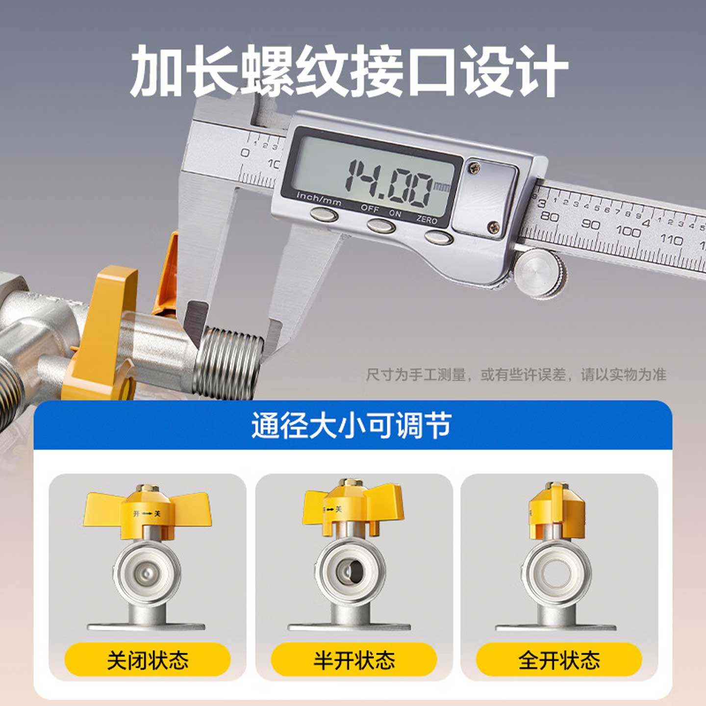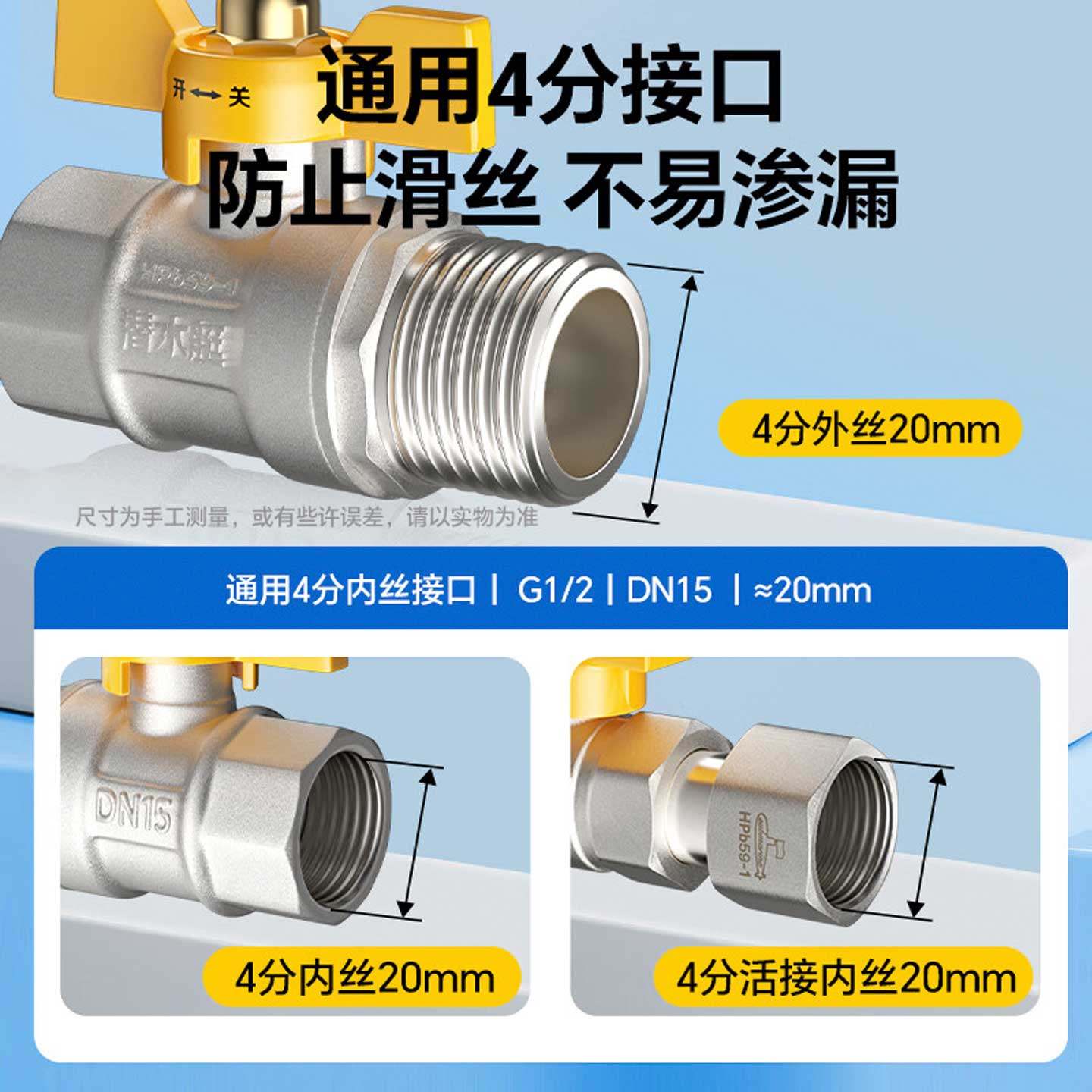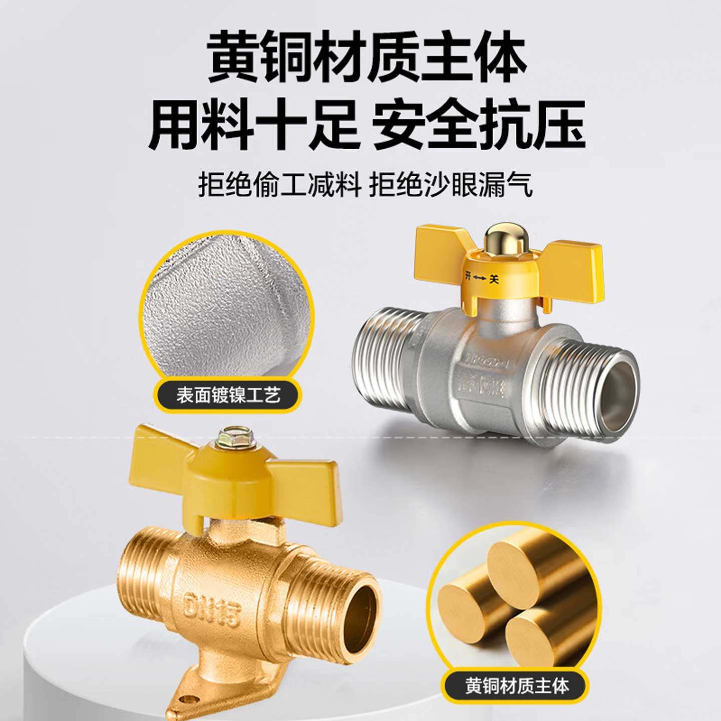 潜水艇燃气三通阀一进二出加厚黄铜燃气阀门4分三通接头带开关阀