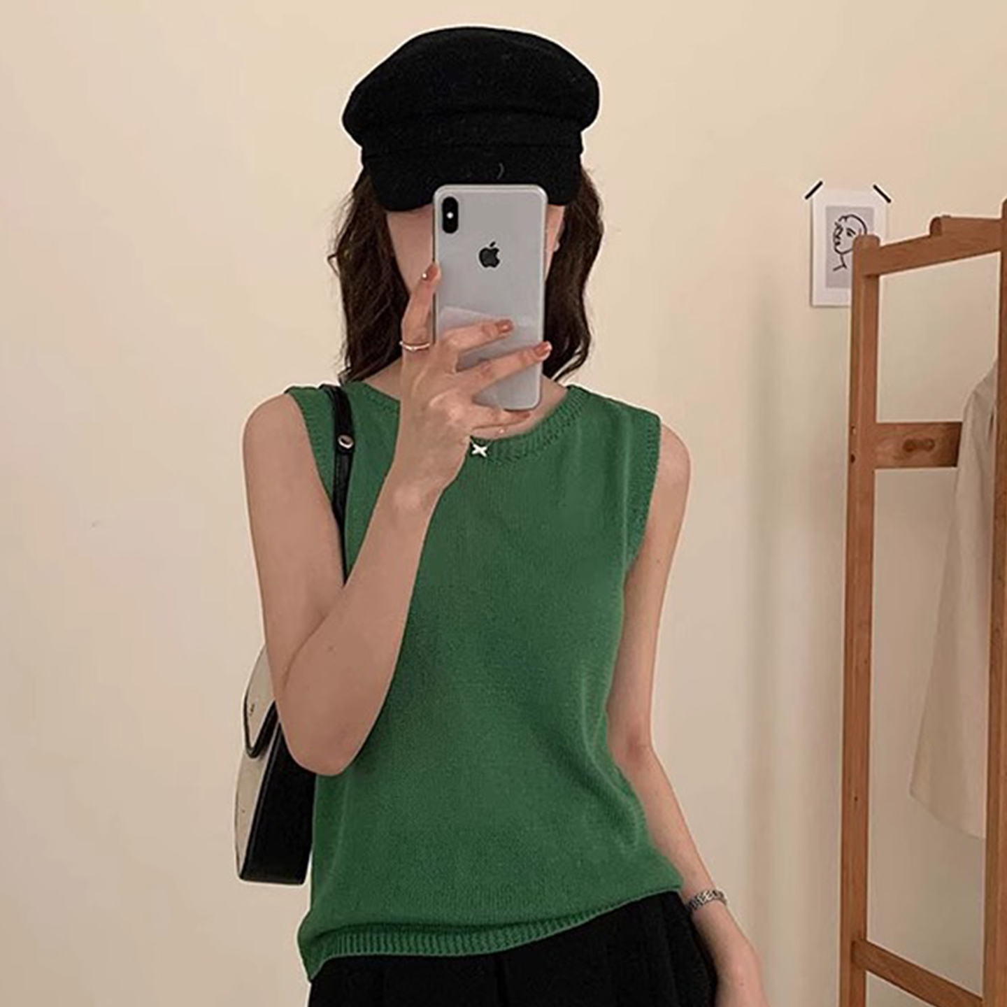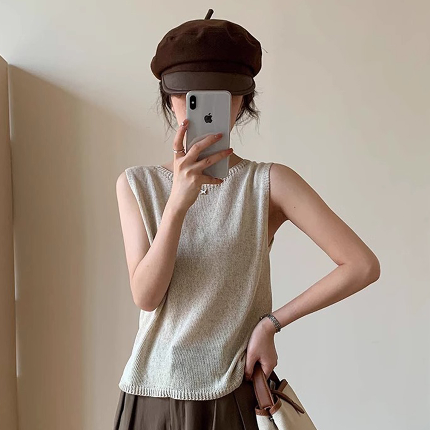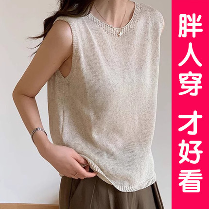 亚麻针织小背心女夏季新款大码胖MM外穿无袖吊带上衣打底通勤内搭