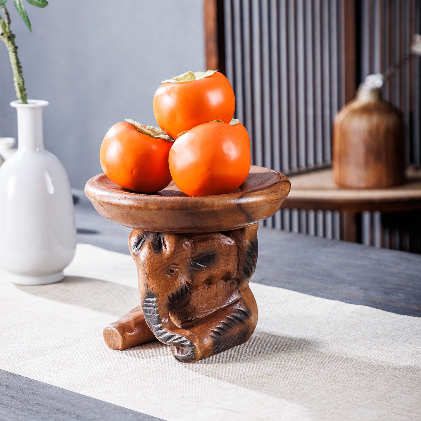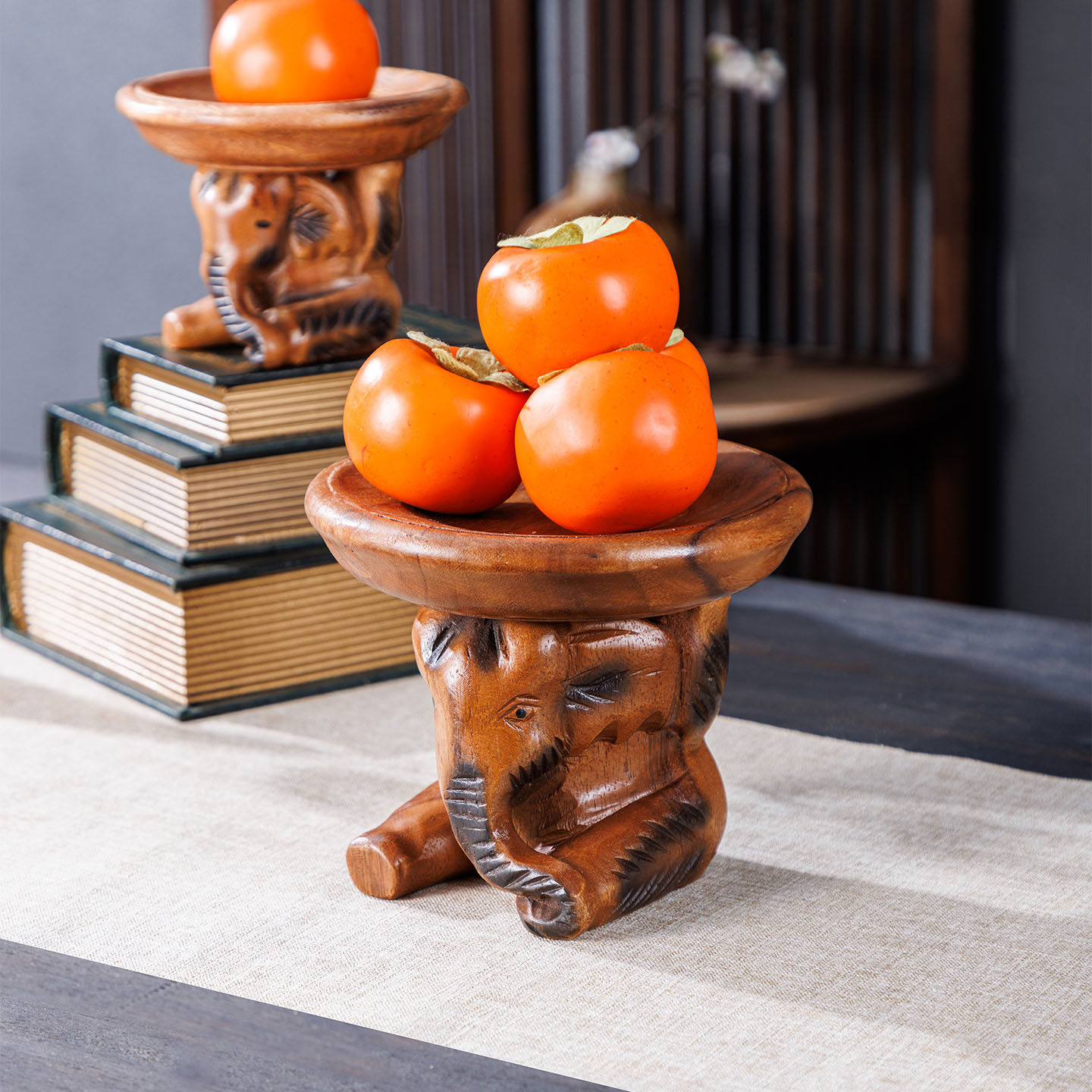 泰国木质水果盘客厅家用大象顶复古实木干果零食盘玄关钥匙收纳盘