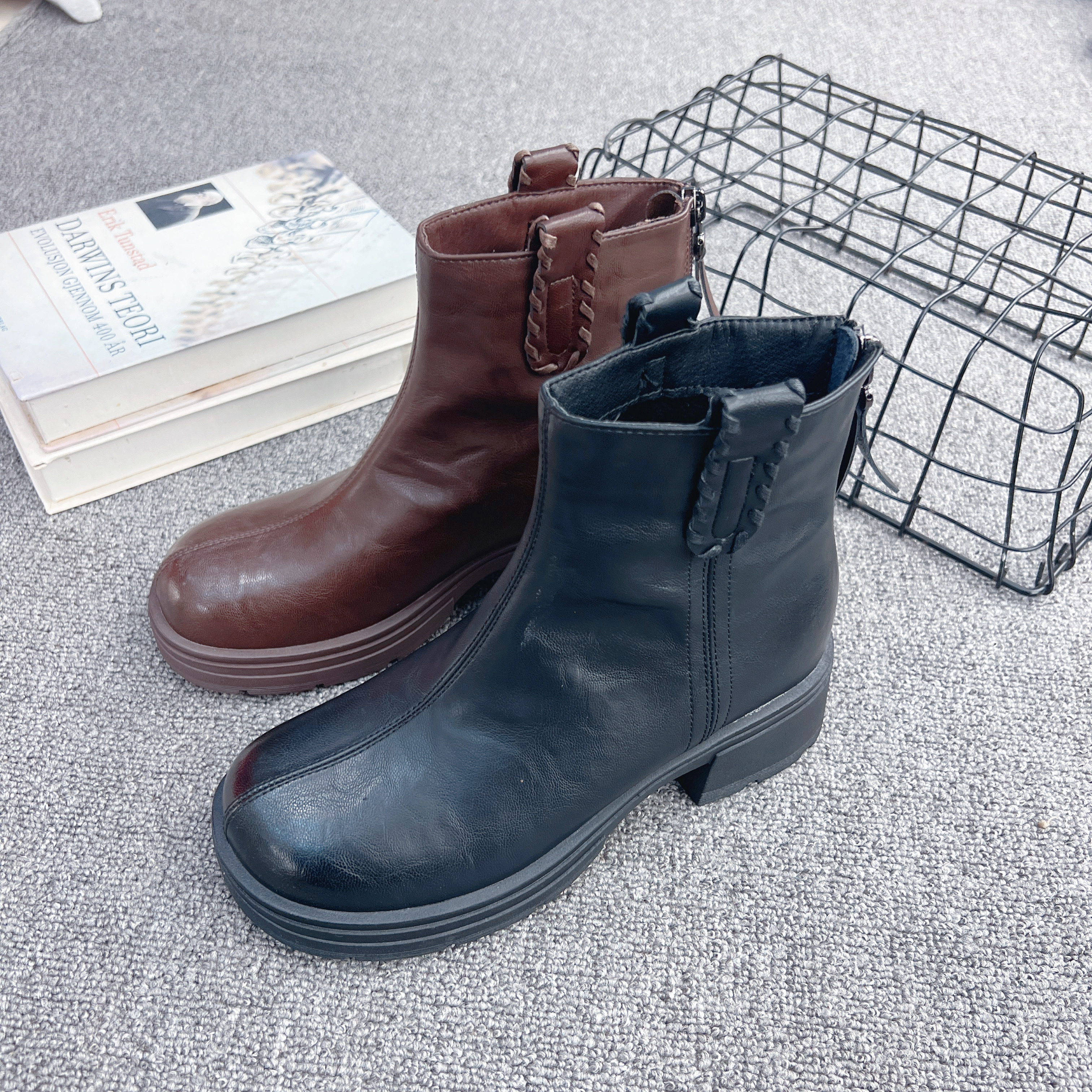 冰芙尼2025冬季新款薄绒女鞋舒适粗跟短靴女时装靴女靴23075