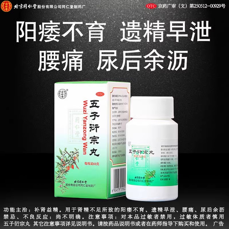 北京同仁堂五子衍宗丸60g阳痿早泄遗精敏感肾亏壮阳补肾男科用药