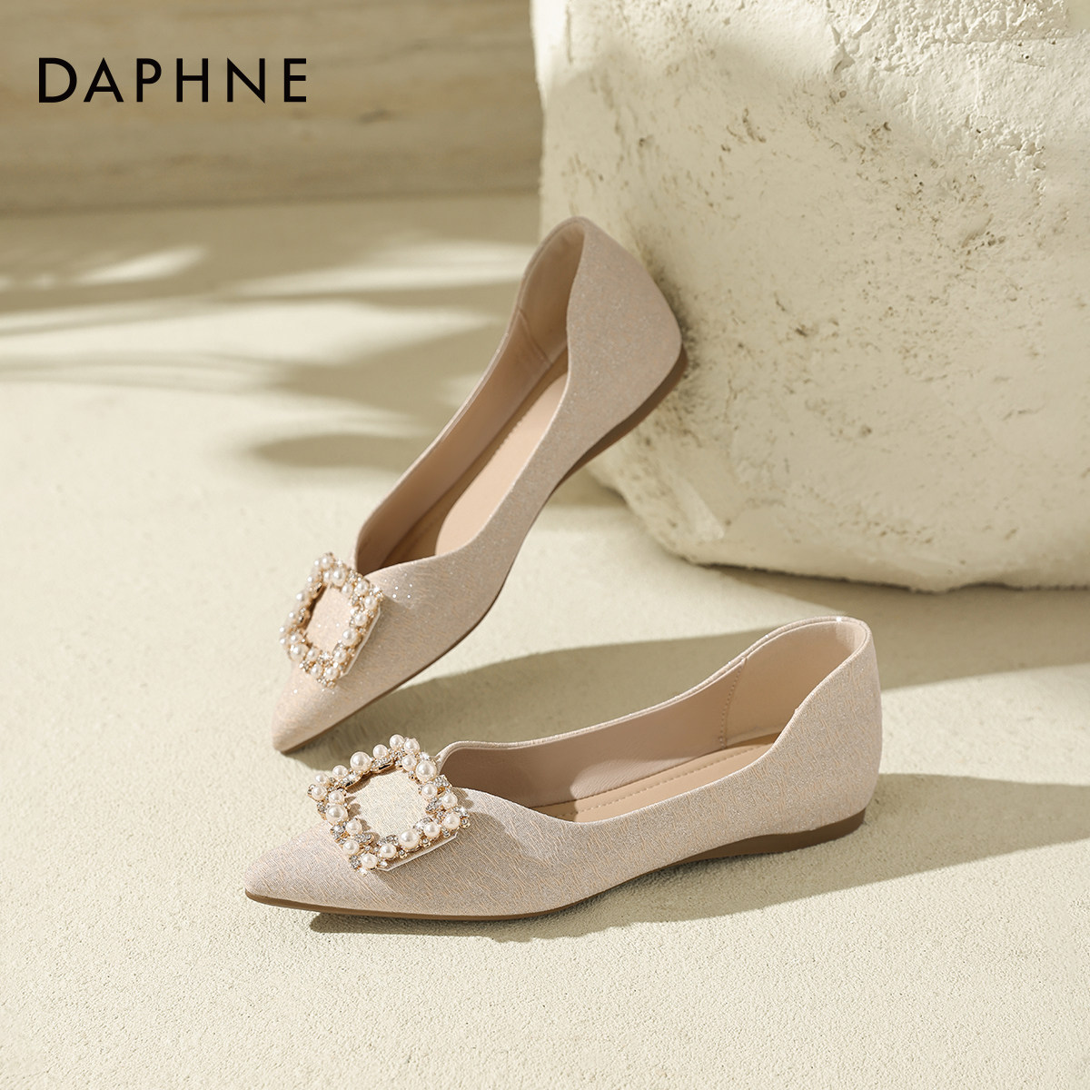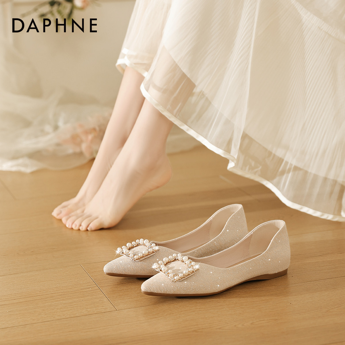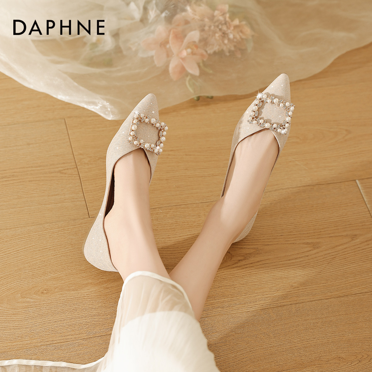 达芙妮尖头平底单鞋女2026新款法式玛丽珍女鞋小皮鞋子伴娘鞋婚鞋