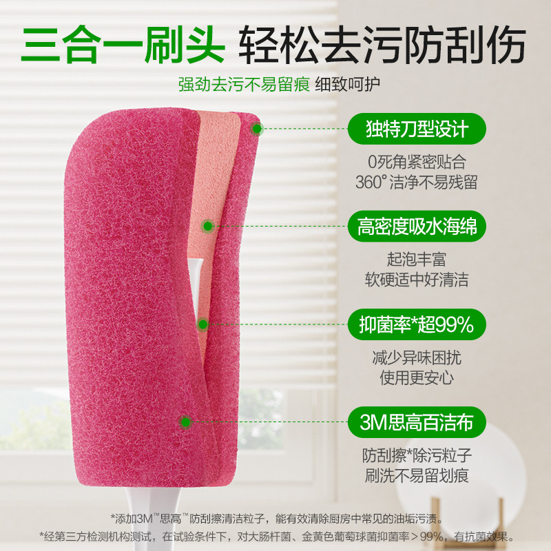 正品3M思高多功能家用去污杯刷瓶刷保温水杯长柄清洁海绵刷奶瓶刷