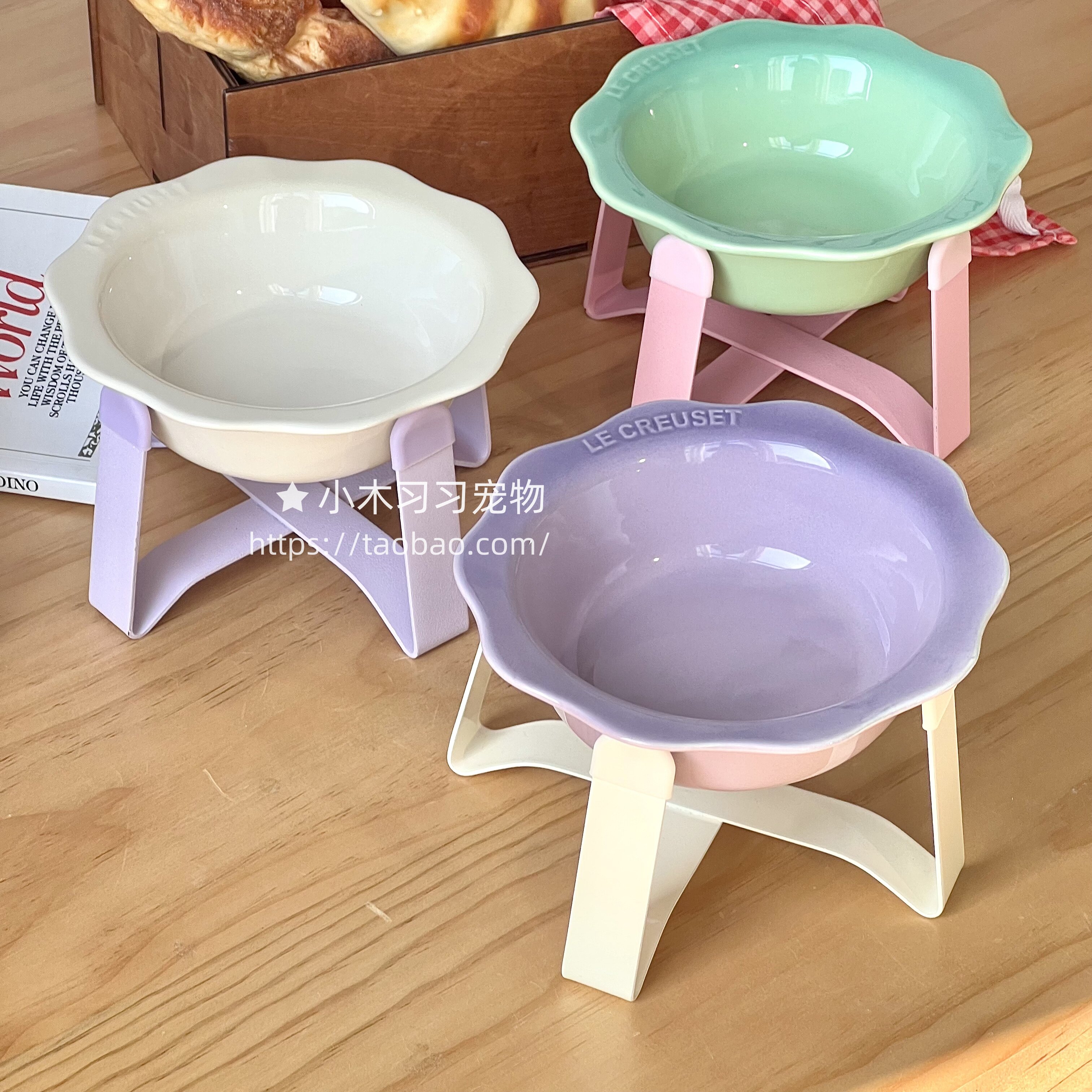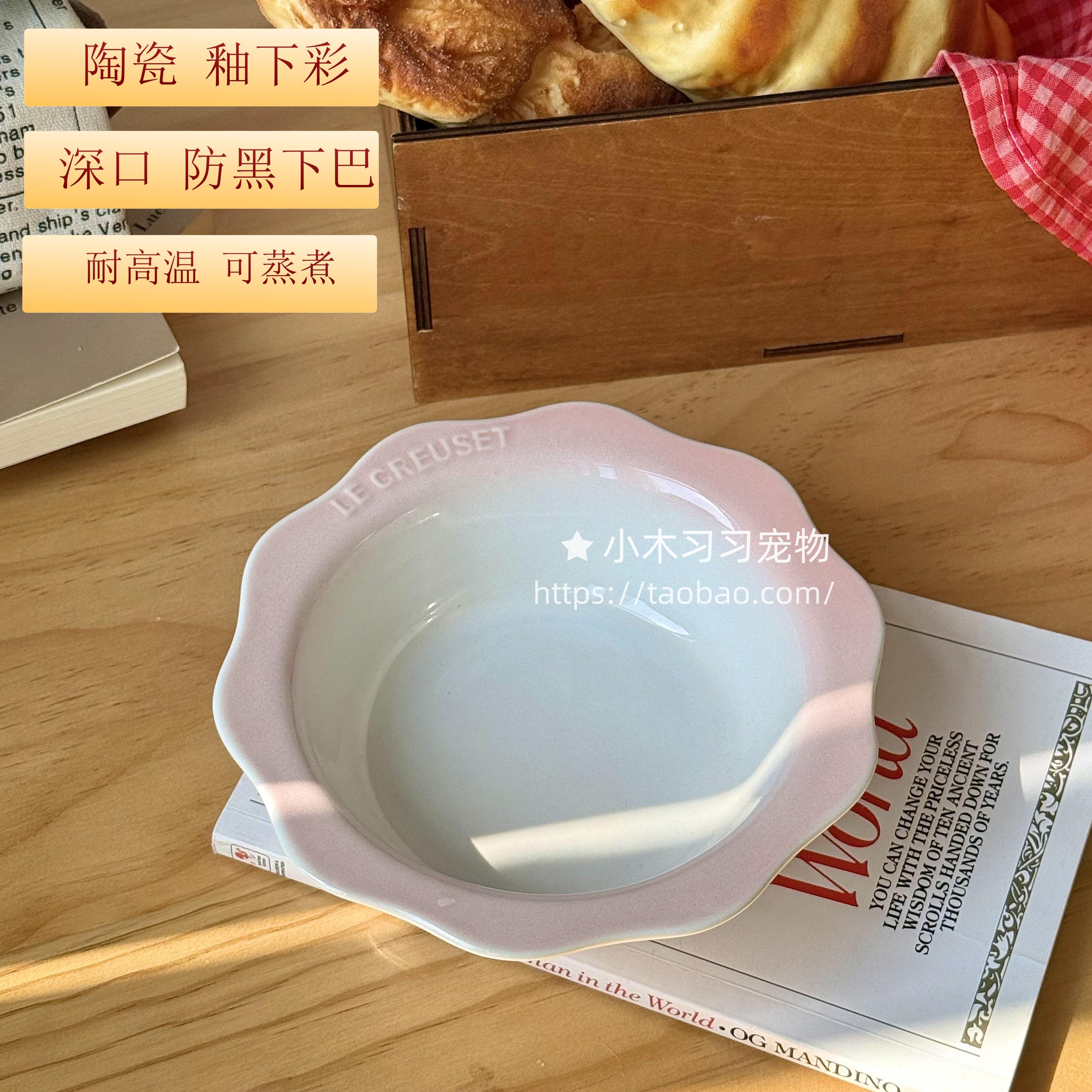 法国花朵宠物碗猫碗狗碗陶瓷增高小食盆喝水吃粮罐头猫咪碗护颈