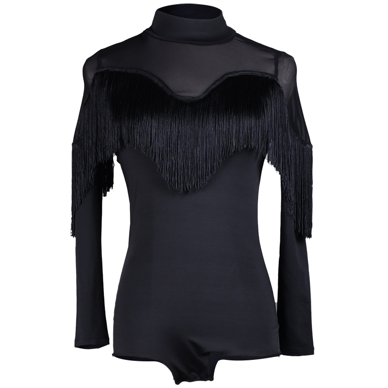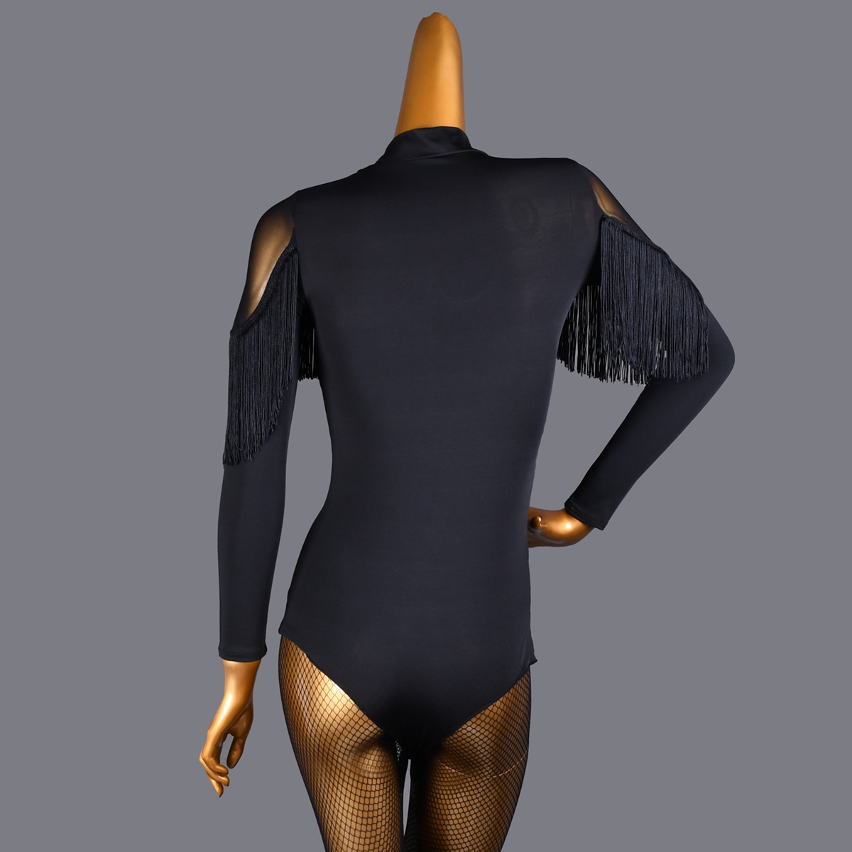 新款高领拉丁舞服装成人上衣摩登舞女舞蹈练功花服恰恰跳舞黑色